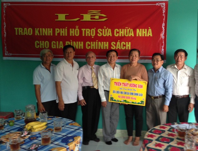 Thể theo lời kêu gọi của UBND xã Nhuận Đức về việc ủng hộ xây dựng, sửa chữa nhà tình nghĩa, tình thương cho mẹ VNAH gửi đến Thiền thất Hương Vân, số 07, ấp Ngã 4, xã Nhuận Đức.