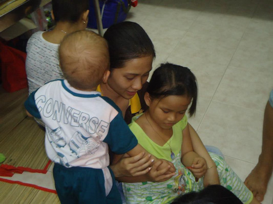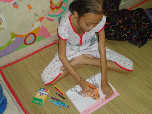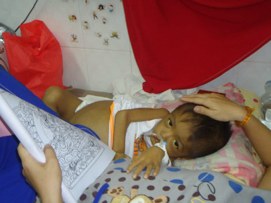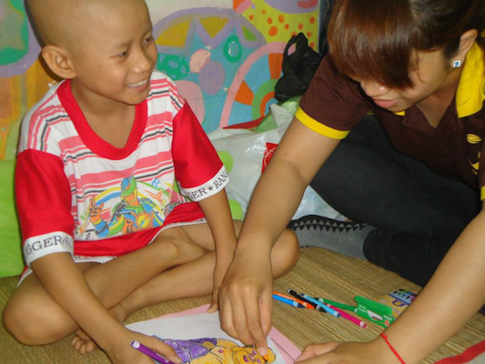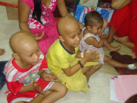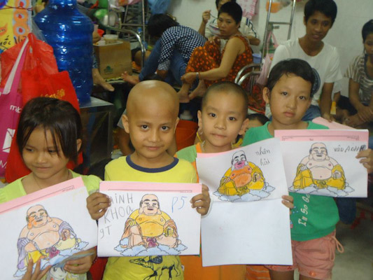 Các tình nguyện viên (TNV) của MYT Sài Gòn đã đến lắng nghe, an ủi, chăm sóc và vui chơi cùng các bệnh nhi ung thư tại bệnh viện. Các bạn TNV còn hướng dẫn các bé niệm Phật và tô màu tranh Phật, Bồ Tát, giao lưu văn nghệ. Chương trình đã trao tặng 27 phần quà gồm sữa, bánh, sách tập tô màu, bút tô màu, chuỗi và máy niệm Phật đến các bệnh nhi ung thư đang điều trị nội trú tại phòng. Các bé và gia đình rất vui và xúc động.