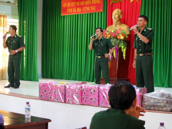Kế đến là các tiết mục văn nghệ với ý nghĩa ca ngợi quê hương đất nước và vai trò của người lính biên phòng do ca sĩ Doãn Minh, Thanh Tuấn cùng các anh BĐBP biểu diễn. Không khí sôi động của lời ca tiếng hát đã làm cho cả Hội trường vui hẳn lên trong những ngày giáp tết.