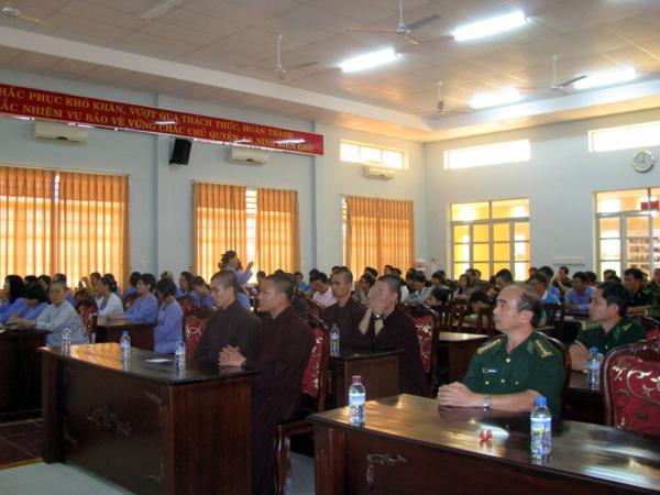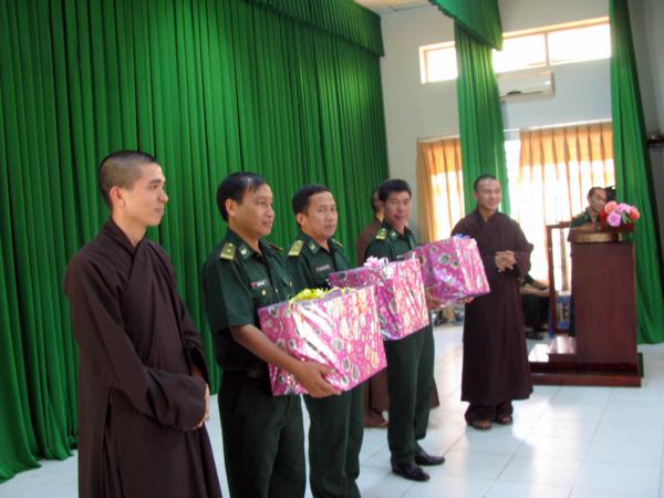 Thay mặt đơn vị, Đại tá Cao Xuân Trang – Phó chỉ huy Trưởng Bộ Chỉ Huy Biên Phòng Tỉnh đã nói lời cảm ơn và chúc tết đến Đoàn. Ông nhận định “Những nghĩa cử gắn bó, ưu ái, ủng hộ đối với Bộ Đội Biên Phòng lâu nay của Thiền Tôn Phật Quang đã nói lên tình thần đoàn kết, yêu nuớc của người dân đối với Tổ quốc mình. Cái thiếu duy nhất của anh em bộ đội biên phòng là gia đình nhưng bù lại sự sẻ chia từ vật chất đến tinh thần của nhà Chùa khiến doanh trại ấm áp hơn vì nghĩa tình quân dân đối với nhau như vậy.