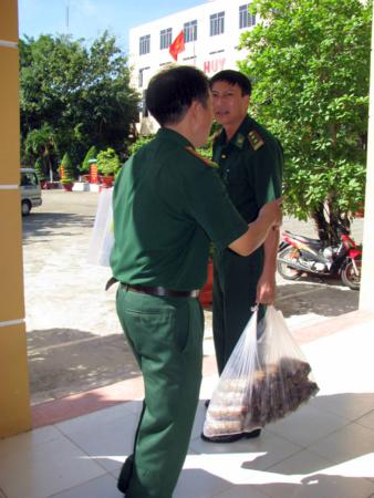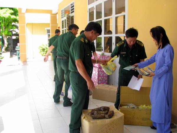 Tại buổi giao lưu, Hội Từ Thiện Phật Quang đã gửi tặng cho các anh Cán bộ, chiến sĩ BĐBP những phần quà với tổng số tiên là 40 triệu đồng (bao gồm bánh tét, trà, cà phê, bánh, mứt, kẹo).
