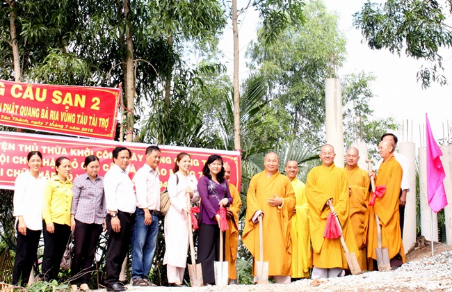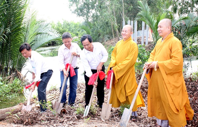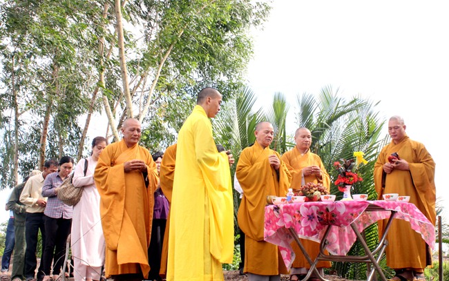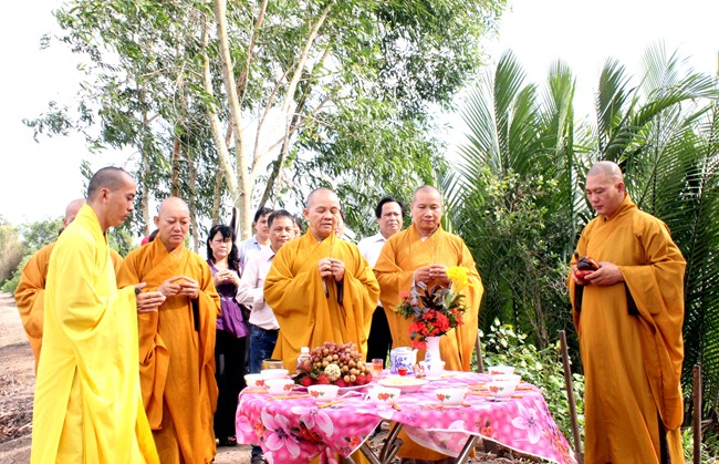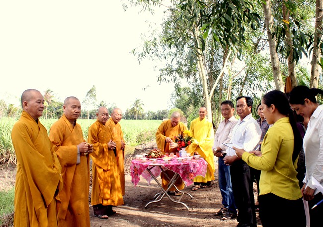 Sau nghi thức hành chánh, HT Thích Minh Thiện chủ trì lễ Khởi công động thổ. Tại buổi lễ, Chư tôn đức Tăng BTS GHPGVN tỉnh Long An, cùng đại diện Hội Từ Thiện Phật Quang và Chính quyền địa phương đã thực hiện khóa lễ tụng niệm cầu nguyện và thực hiện các nghi thức khởi công.