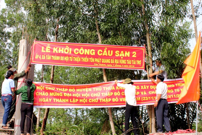 Tiếp theo, ông Lê Văn Hồng thay mặt Ủy ban nhân dân xã Tân Thành, gửi lời cảm ơn đến Chư tôn đức BTS GHPGVN tỉnh Long An và Hội Từ Thiện Phật Quang đã quan tâm ủng hộ nhân dân địa phương ấp 4, xã Tân Thành xây dựng một cây cầu mới. Ông hứa sẽ tăng cường giám sát làm sao cho cây cầu đạt được chất lượng tốt nhất. Ông cũng cho biết trong thời gian tới (năm 2017) tuyến đường đi ngang qua cây cầu cũng sẽ được nâng cấp mở rộng ra 4m, nhằm đáp ứng nhu cầu đi lại của người dân.