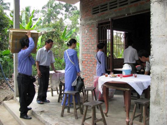 Đến dự lễ trao nhà có ông Nguyễn Ngọc Sơn – Trưởng ấp, ông Nguyễn Văn Sơn – Bí thư Chi bộ xã Long Chiên và các thành viên Hội Từ Thiện Phật Quang.và những người hàng xóm giúp đỡ ngày công.