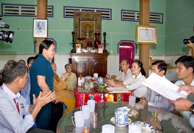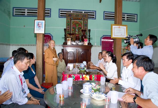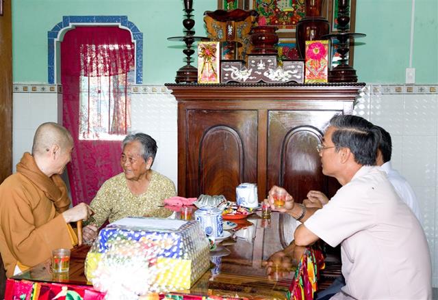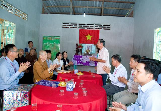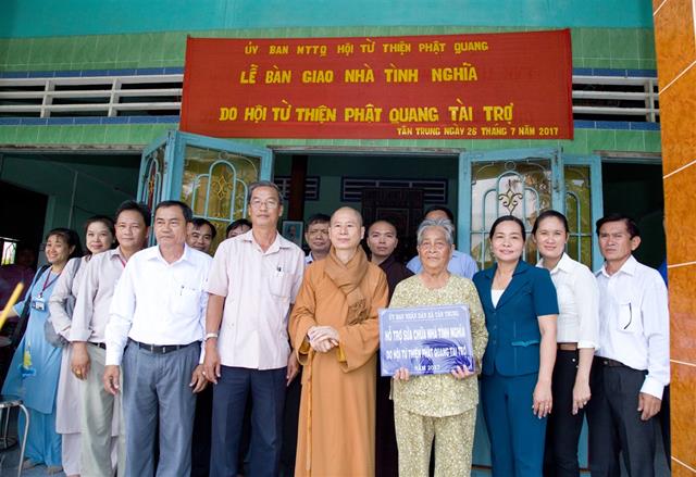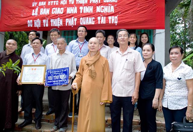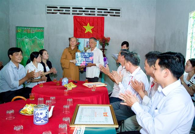Dịp này, TT Thích Chân Quang đã trao bảng nhà cho Mẹ. Chúc Mẹ luôn khỏe, an vui. Thượng tọa cho rằng đây là bổn phận của chùa đối với công tác “Đền ơn đáp nghĩa” này. Thượng tọa luôn nhắc nhở các Đạo tràng Phật tử rằng: Trên bước đường đạo pháp đồng hành cùng dân tộc, Người mong tất cả phật tử luôn hướng đến người nghèo bằng tình thương, niềm chia sẽ theo tinh thần từ bi của đạo Phật. Vì vậy, những việc công ích của xã hội mình cố gắng lo với địa phương, đó là một trong muôn ngàn việc làm đóng góp xây dựng đất nước.