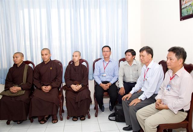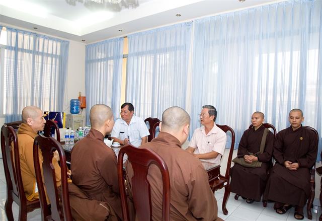 Tiếp Đoàn có ông Trần Văn Khuê, Phó Trưởng ban Ban Tôn giáo tỉnh Tiền Giang và chuyên viên các Phòng Nghiệp vụ.