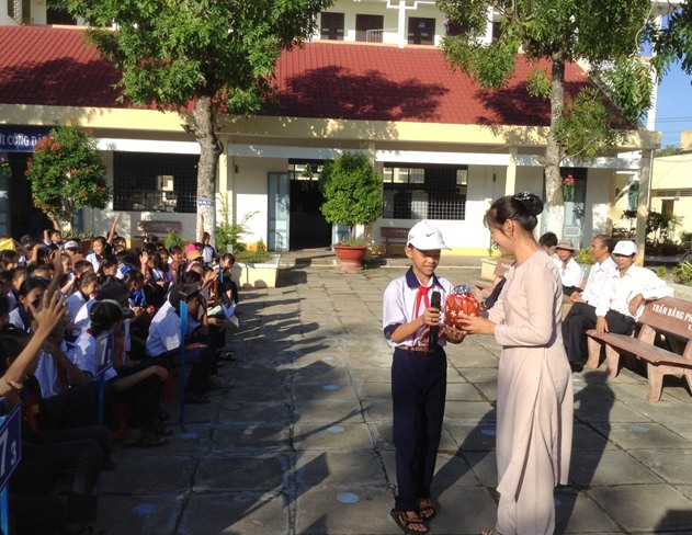 Tại buổi Lễ, thầy Hiệu trưởng Trần Bằng Phi chia sẻ: Đa số các em học sinh sống trong hoàn cảnh gia đình không đầy đủ tình thương,cha mẹ đi làm nhiều nơi, gửi các em cho ông bà hoặc giao phó hết trách nhiệm dạy dỗ cho nhà trường, nên việc dạy dỗ cũng như rèn luyện đạo đức của các em chưa đáp ứng tốt.Hôm nay, được Hội Từ Thiện quan tâm, thay mặt BGH nhà trường thầy rất cảm độngvà xin gửi đến Đoàn lời cảm ơn chân thành sâu sắc nhất và hứa sẽ cố gắng cùng đội ngũ Giáo viên dạy dỗ cho các em đạt được những tiêu chuẩn mà Hội đưa ra,nhằm thể hiện sự cảm kích trước những tấm lòng nhân ái đã góp phần thắp sáng tương lai cho cácem.