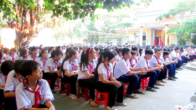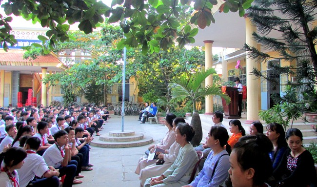 Được biết, trường THCS Lê Thị Cẩm Lệcó tổng cộng hơn 780 học sinh với 20 lớp, chia làm 4 khối 6, 7, 8, 9.