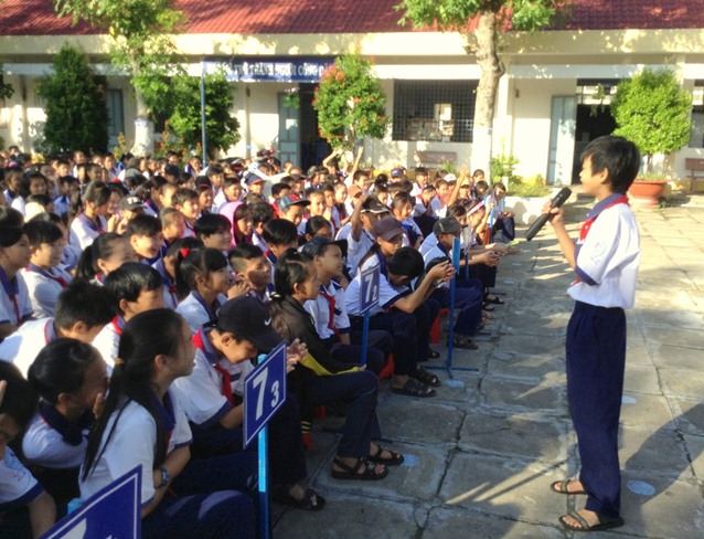 Tương tự, Đoàn do cô Tâm Niệm làm Trưởng Đoàn đã đến trường THCS Ninh Bình, cũng thực hiện một chương trình giao lưu gây ấn tượng với bốn tiêu chí trên.