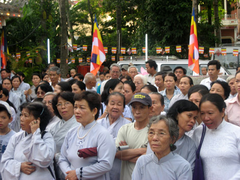 Xung quanh lễ đài trước chùa Diệu Đế, ước chừng có khoảng gần một vạn Phật tử ở 8 huyện, thành trong tỉnh Thừa Thiên – Huế và Phật tử gần xa, được xếp theo các khối có tổ chức rất trật tự.