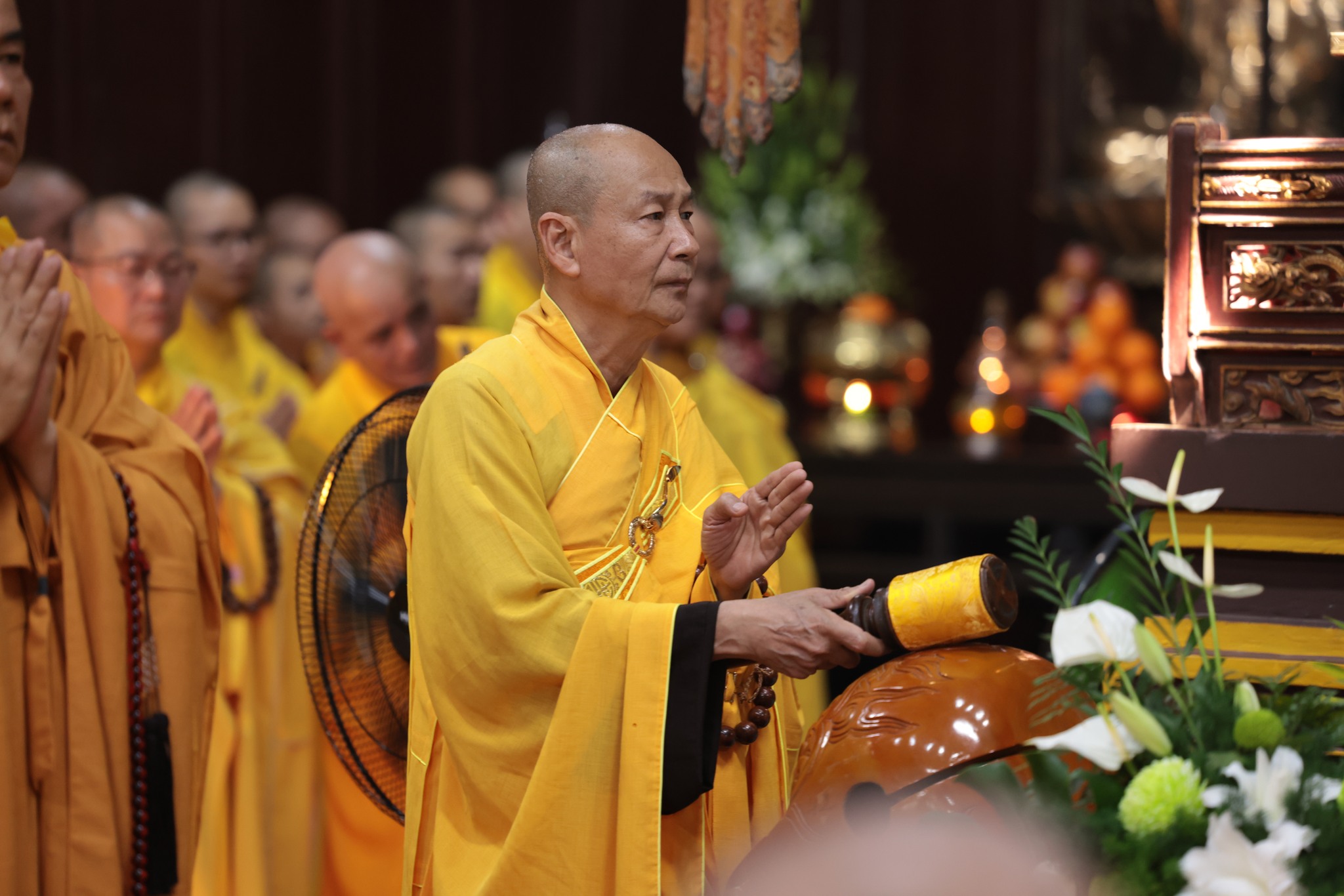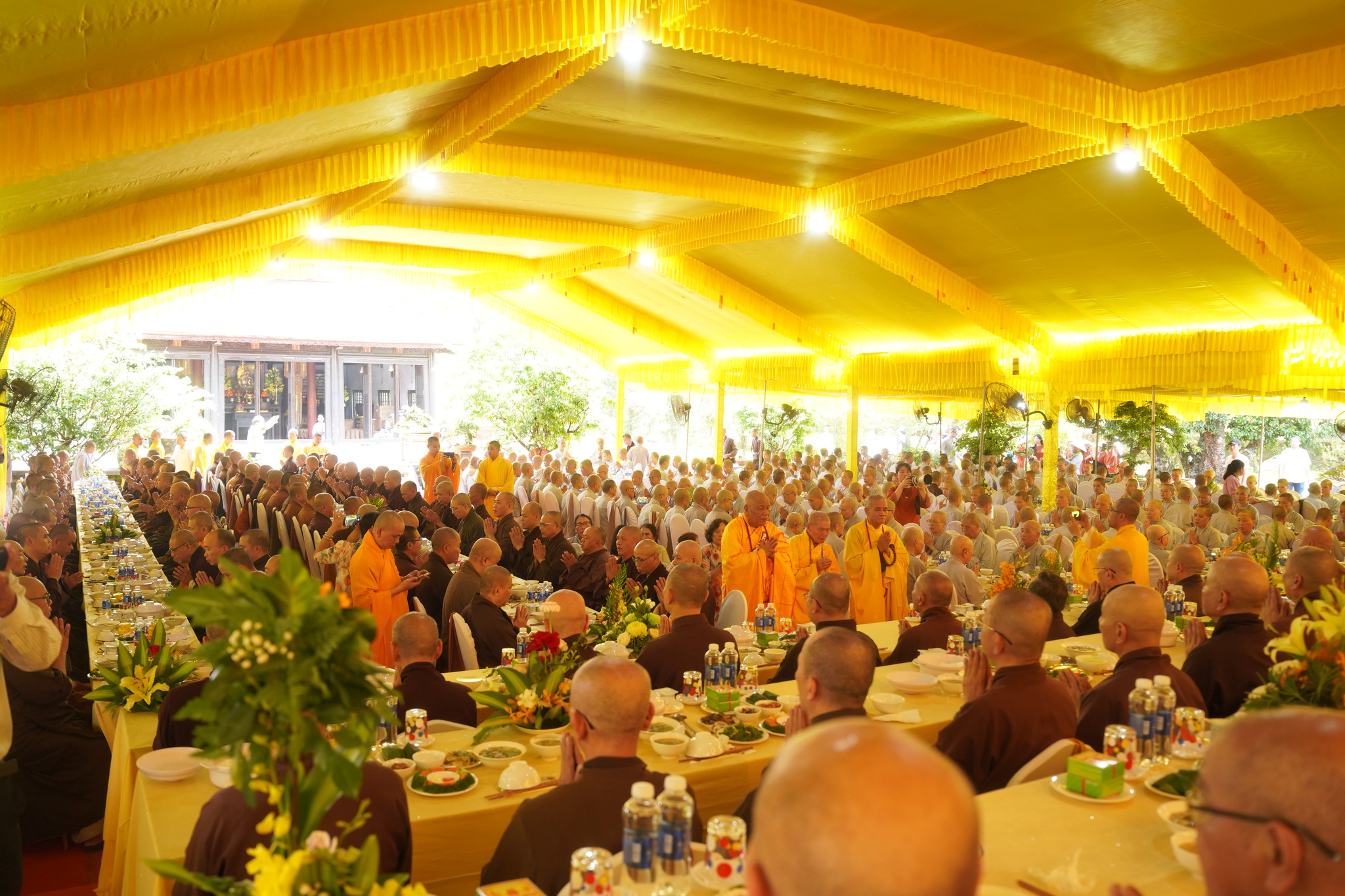 Tại Đại Hùng Bảo Điện, Hoà thượng Sám chủ Đạo hiệu Thích Giác Đạo cùng Chư Tôn Đức Tăng cử hành lễ cúng ngọ.
