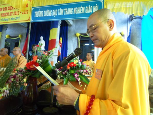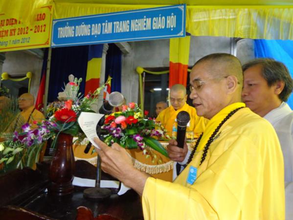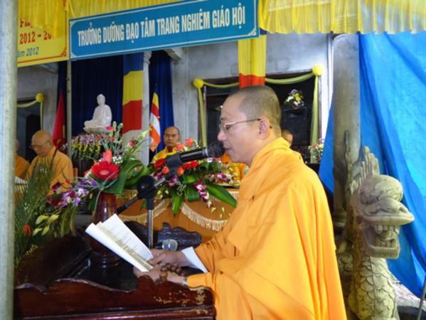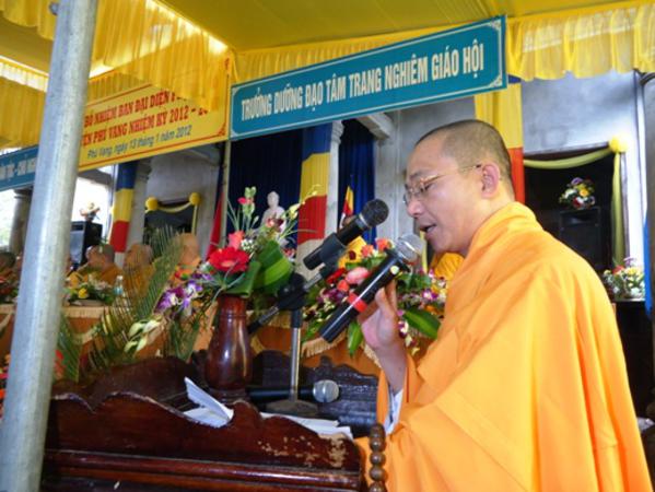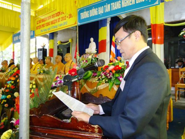 TT Thích Trí Đạo đã đọc diễn văn khai mạt: "Năm 2007, được sự tín nhiệm phân công của Ban Trị Sự Giáo hội Phật giáo tỉnh Thừa Thiên Huế, chúng tôi đảm trách Phật sự tại huyện Phú Vang với cương vị Chánh Đại Diện và 14 thành viên khác. Trong nhiệm kỳ qua, Phật giáo huyện Phú Vang cũng có nhiều thuận duyên để đạt được một số thành quả nhất định. Tuy nhiên nghịch duyên và nhược điểm cũng còn tồn tại nhiều, từ đó rút ra những kinh nghiệm quý báu giúp Ban Đại Diện Phật giáo nhiệm kỳ 2012-2017 xây dựng chương trình hoạt động Phật sự đúng với thực tiễn và tình hình thực tế của Huyện nhà, cùng với Giáo hội Tỉnh và Giáo hội Trung ương góp phần cùng nhà nước xây dựng đất nước trong thời kỳ hội nhập và phát triển của thời đại."