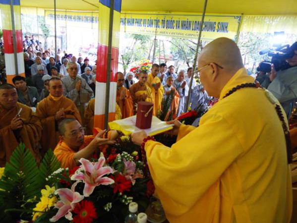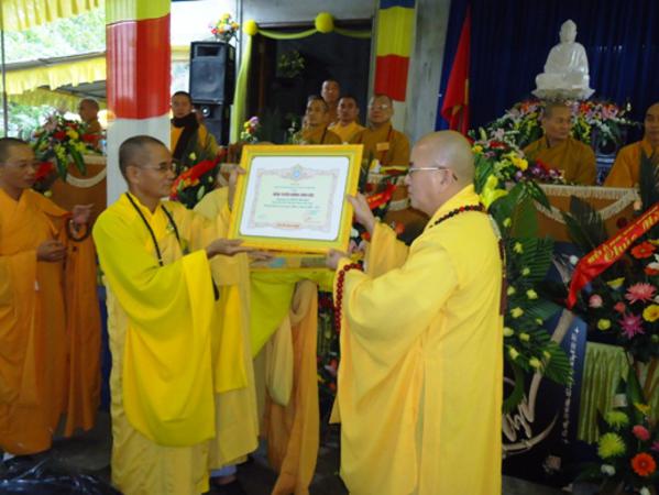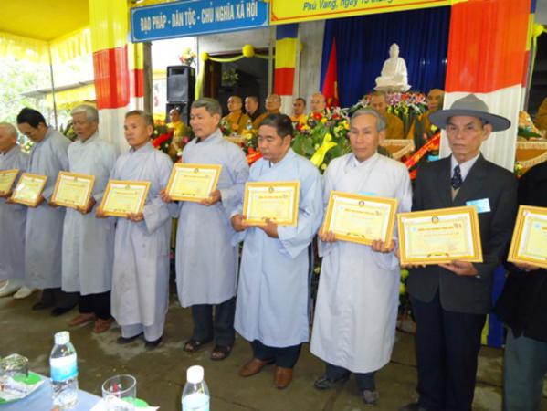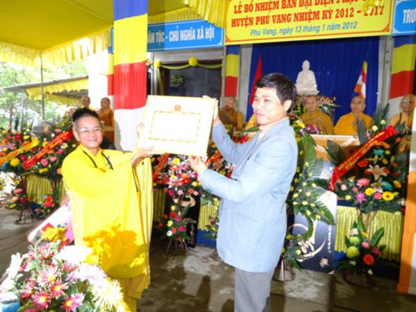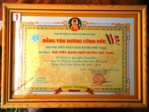 Ghi nhận sự đóng góp to lớn của Ban Đại diện huyện Phú Vang NK 2007-2012, HT. Thích Khế Chơn đã thay mặt Ban Trị sự GHPG tỉnh TT Huế đã trao tặng bằng Tuyên dương công đức của Ban Trị sự GHPG tỉnh TT Huế đến Ban Đại diện và cá nhân TT. Thích Trí Đạo, Chánh Đại diện Phật giáo huyện Phú Vang NK 2007-2012. Hòa thượng Thích Khế Chơn đã đại diện Ban Trị sự trao quyết định bổ nhiệm Ban Đại diện Phật giáo huyện Phú Vang nhiệm kỳ 2012-2017 do ĐĐ Thích Phước Thông làm Chánh Đại diện; ĐĐ Thích Tâm Thiện; ĐĐ Thích Nhật Tuệ đồng Phó ban; ĐĐ Thích Đạo Tuệ, làm Thư ký; sư cô Thích như Hạnh làm thủy quỷ cùng 1o vị Ủy viên Thường trực và 5 vị Ủy viên dự khuyết .