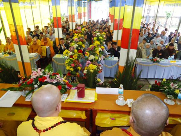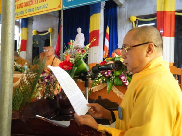 Đ Thích Phước Thông, đọc báo cáo tổng kết NK 2007-2012 nêu bật những thành tựu Phật sự mà toàn Ban Đại diện cũng như các Ban Hộ tự và bà con Phật tử đã đạt được, đáng chú ý là công tác hướng dẫn Phật tử tu học, tổ chức các kỳ đại lễ, đại lễ cầu an, cầu siêu; hướng dẫn chỉ đạo trùng tu, xây dựng các cơ sở thờ tự; ấn tượng và thành tựu lớn là hoạt động từ thiện xã hội NK 2007-2012 hàng năm Ban Đại diện đã vận động hàng trăm triệu đồng và lương thực thực phẩm hỗ trợ bà con nghèo và thiên tai…