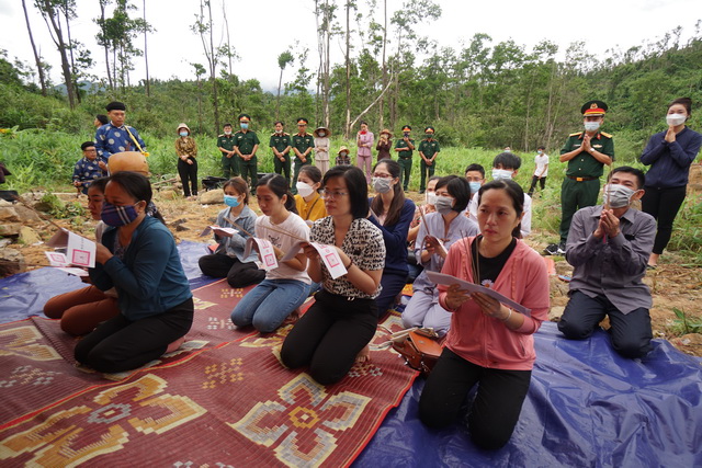 Thân nhân các chiến sĩ hy sinh tham dự buổi lễ và cầu nguyện