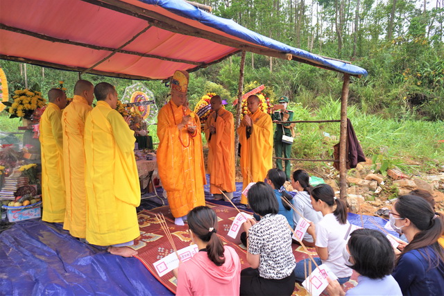 PTVN - Sáng 23/7/2021 tại Tiểu khu 67 (huyện Phong Điền. TT.Huế), được sự phối hợp của Bộ chỉ huy Quân sự tỉnh Thừa Thiên Huế, chư Tôn đức Ban Trị sự GHPGVN tỉnh đã tổ chức lễ cầu siêu, dâng hương tưởng niệm đến 13 liệt sĩ đã hy sinh khi làm nhiệm vụ tìm kiếm cứu nạn các công nhân mất tích tại Thủy điện Rào Trăng 3.