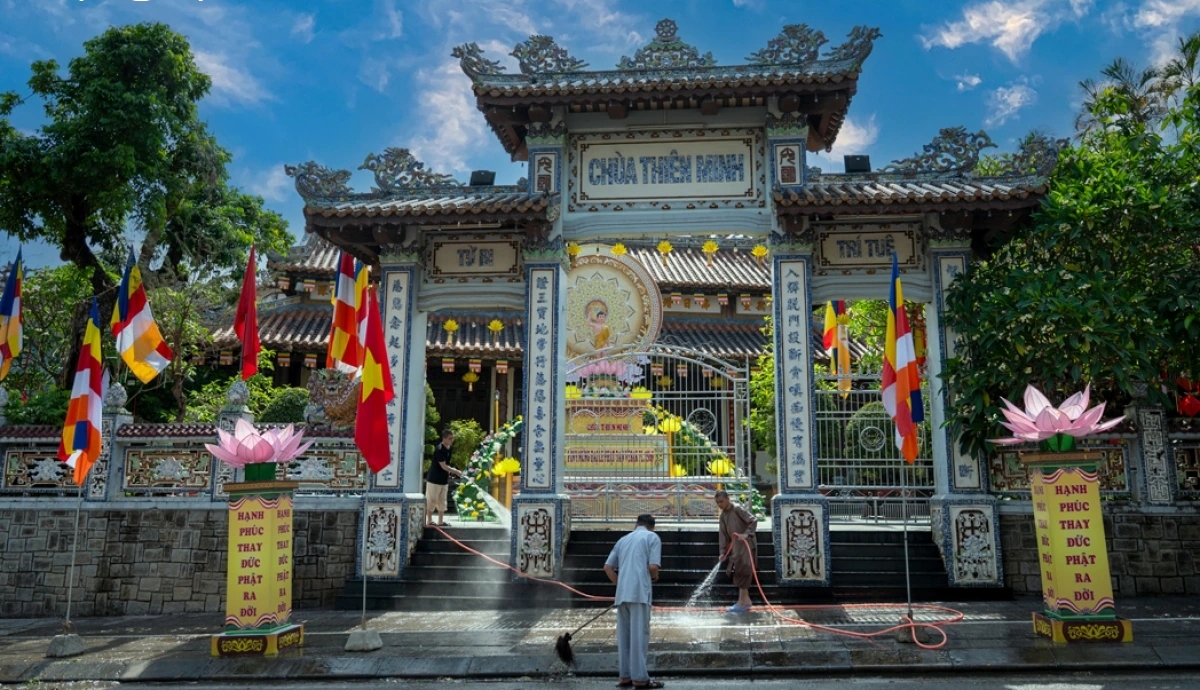 Các chùa lớn tại Huế như chùa Từ Đàm, Thiên Mụ, Báo Quốc, Diệu Đế… bắt đầu được chỉnh trang, dọn dẹp sạch sẽ, trang trí hoa đăng, đèn lồng, băng rôn, cờ phướn đầy màu sắc.