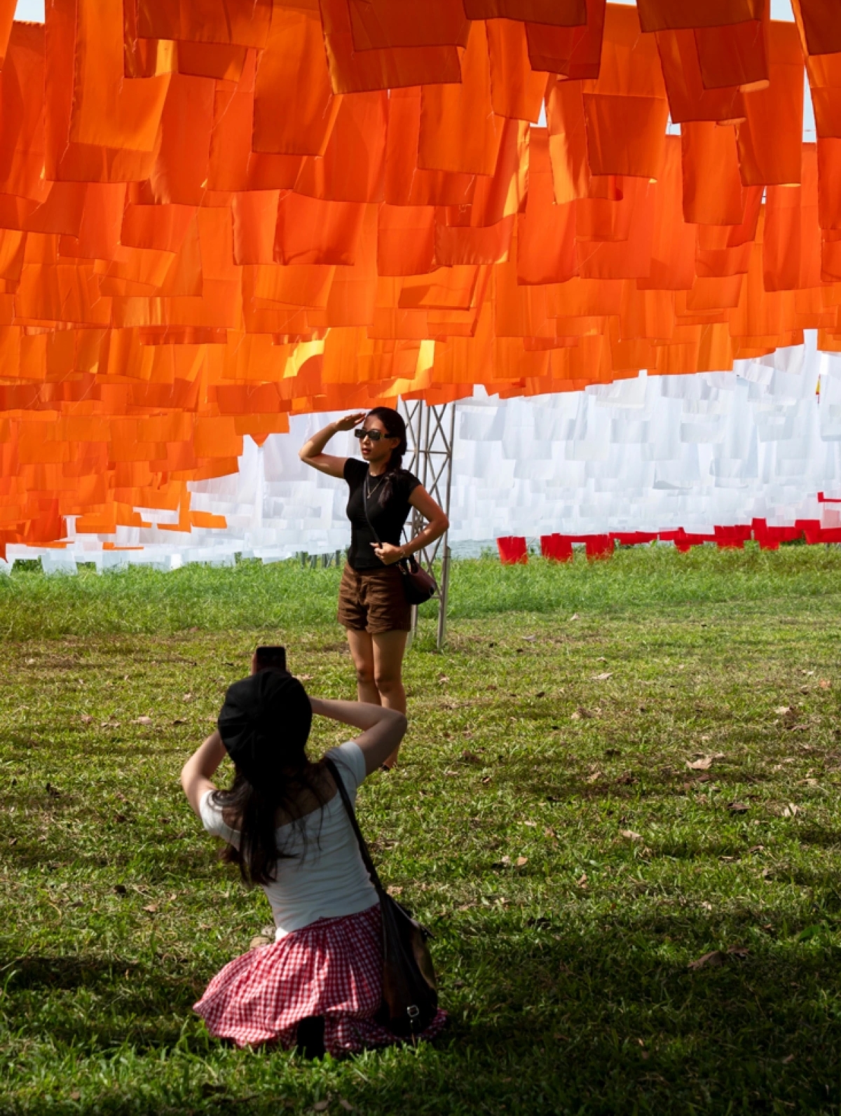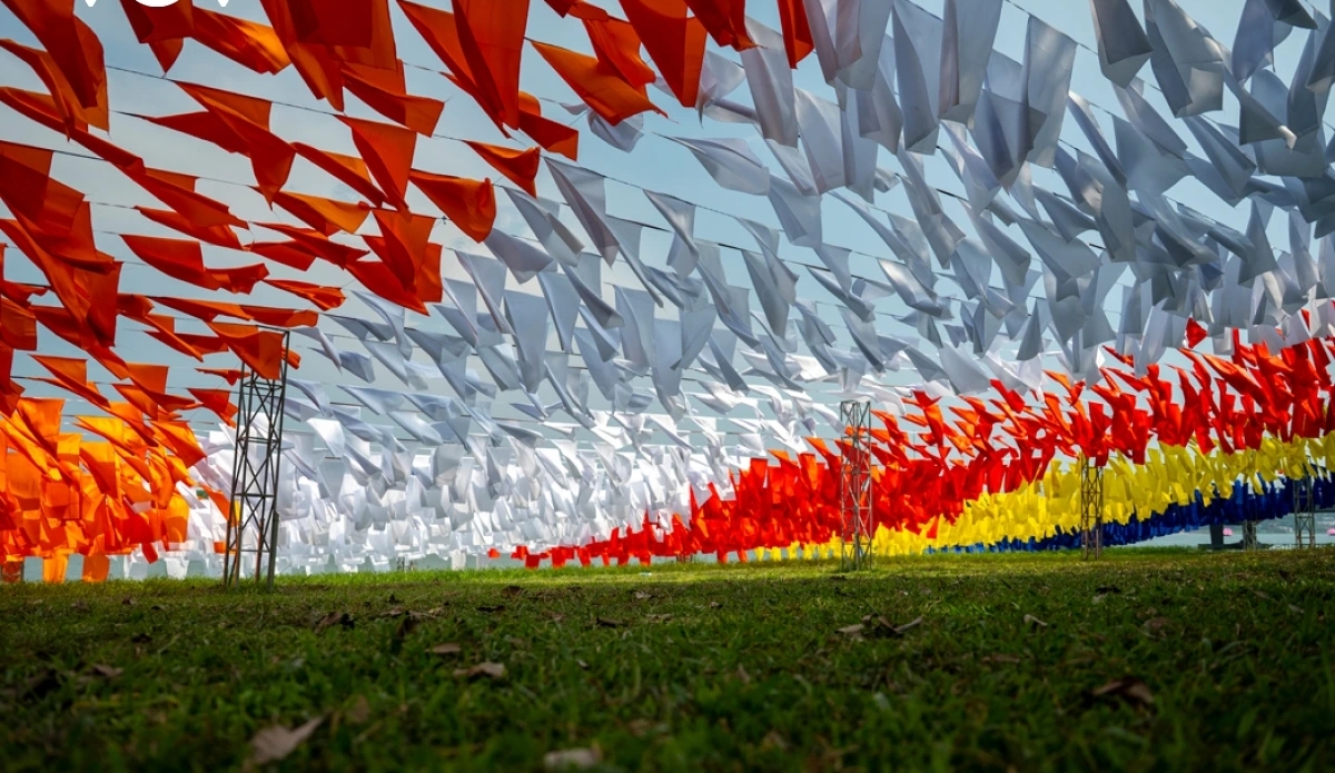 Tác phẩm sắp đặt theo màu cờ Phật Giáo thu hút nhiều du khách chụp ảnh check in trong mùa Phật Đản