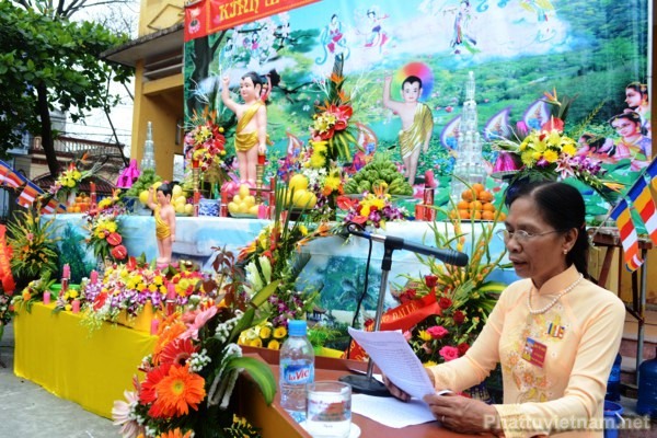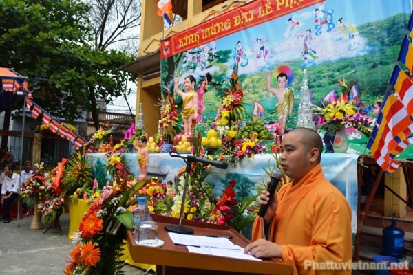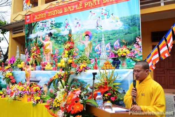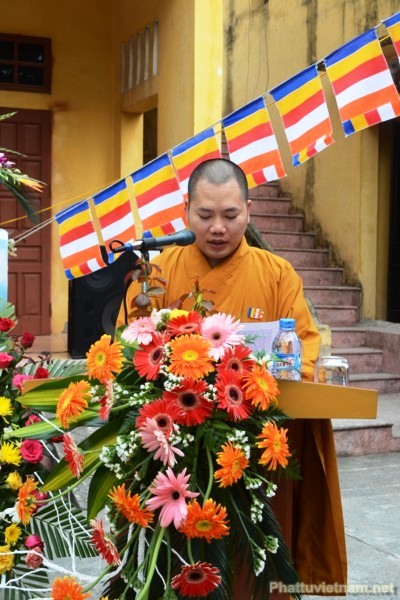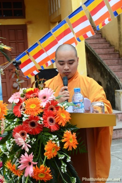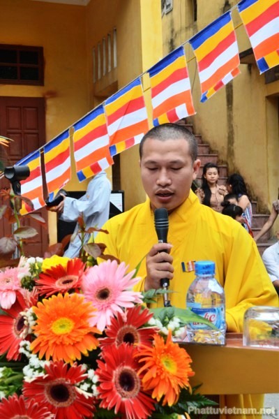 Sau nghi thức niệm Phật cầu gia bị, ĐĐ. Thích Giác Nghĩa – Trụ trì chùa Minh Quang đã tuyên đọc thông điệp Phật đản PL.2557 của Đức Pháp Chủ GHPGVN – Thích Phổ Tuệ.