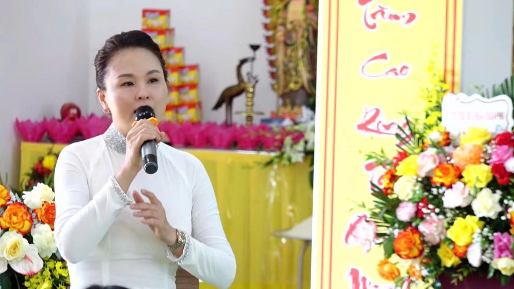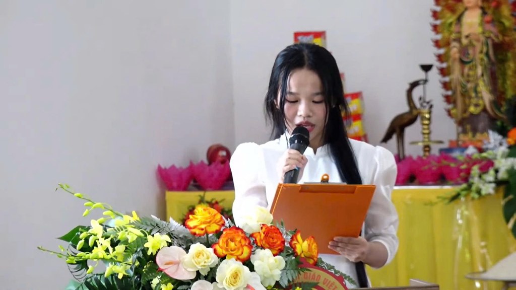 Đại diện Phật tử đọc bài Hoài Niệm Vu lan và ý nghĩa cài hoa hồng