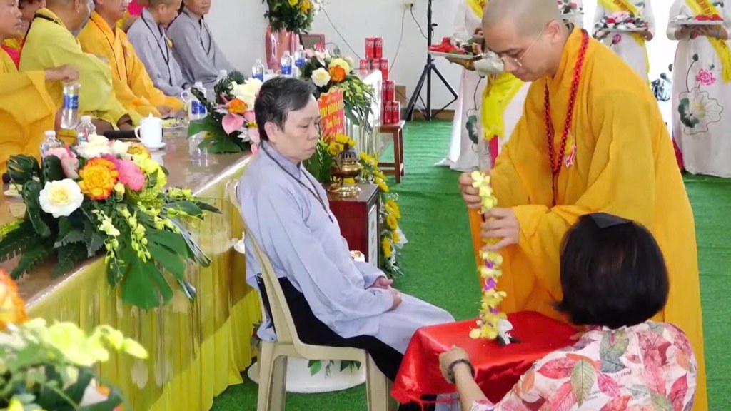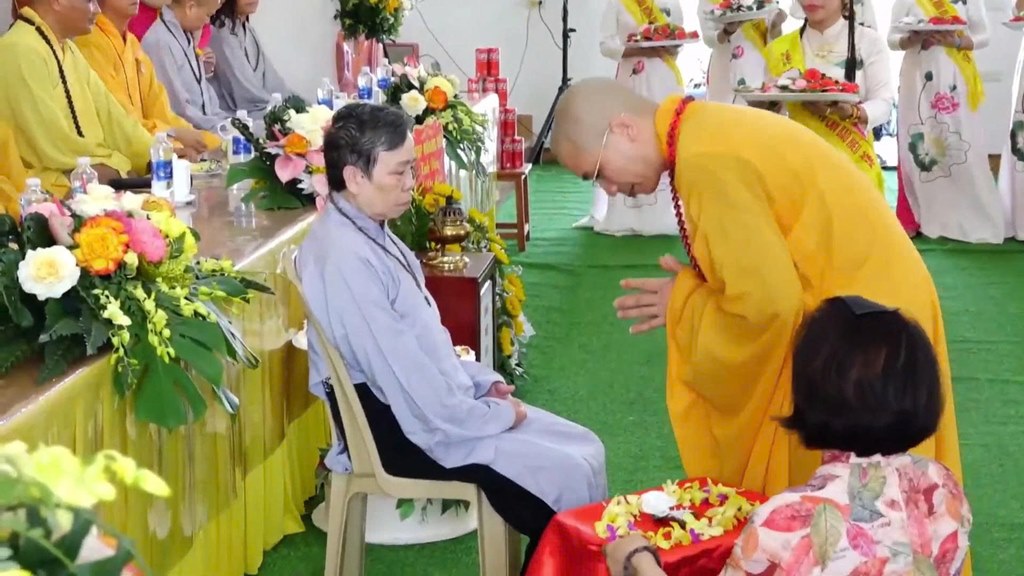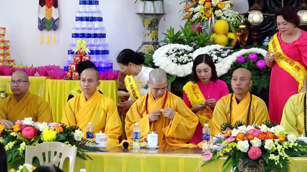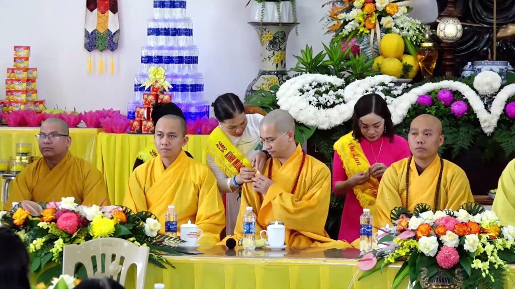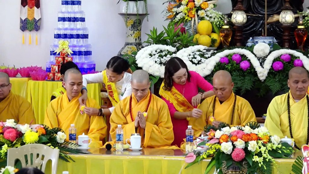 Chư tôn đức thực hiện nghi thức cài hoa hồng