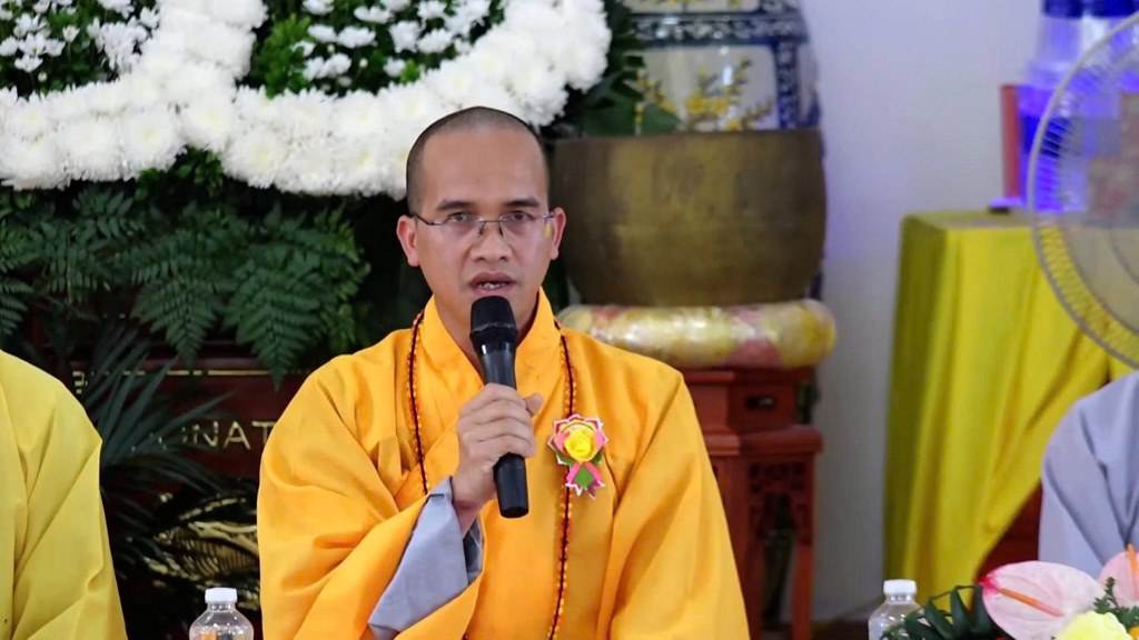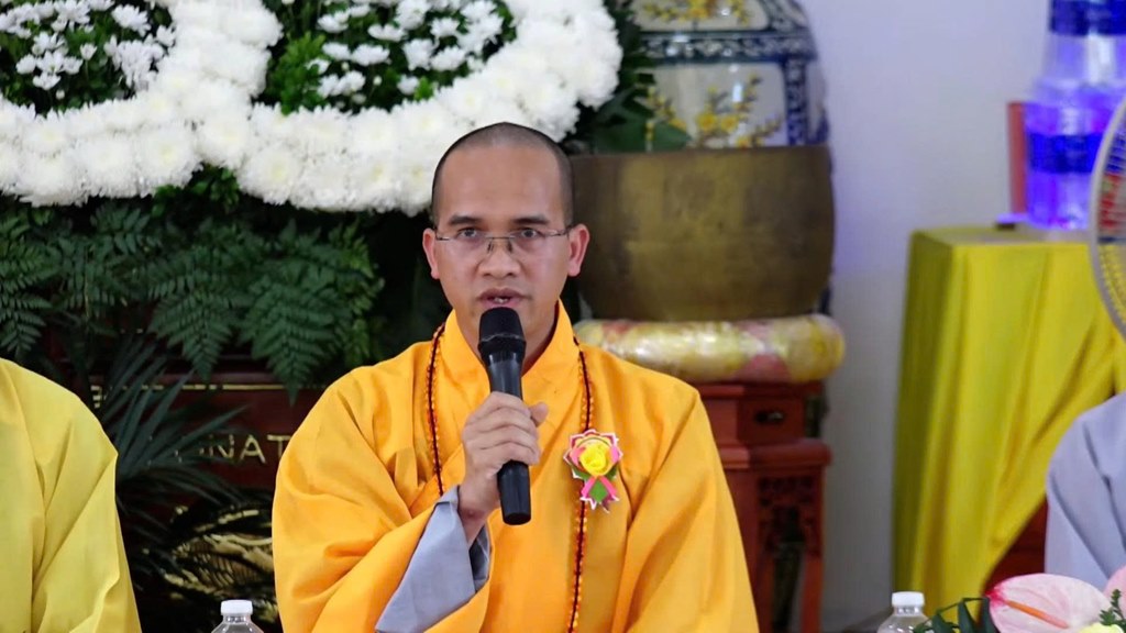 Đại đức Thích Nhựt Hải chia sẻ về nguồn gốc của Lễ Vu lan tại buổi lễ