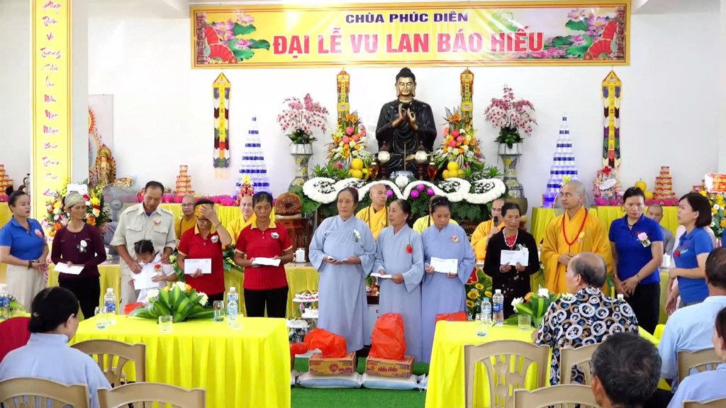 Dịp này, chùa Phúc Diên đã tổ chức các hoạt động rất ý nghĩa để hồi hướng công đức lành đó cho ông bà cha mẹ hiện tiền, cũng như ông bà cha mẹ đã quá vãng, với các hoạt động Phật sự như: tụng kinh Vu lan Báo hiếu, khóa lễ cầu siêu, phóng sinh, trai đàn chẩn tế…Đặc biệt là nghi thức “ Bông Hồng Cài Áo” được diễn ra rất trang nghiêm, thanh tịnh và xúc động, cùng với sự hiện diện của thân mẫu của Đại đức trụ trì.