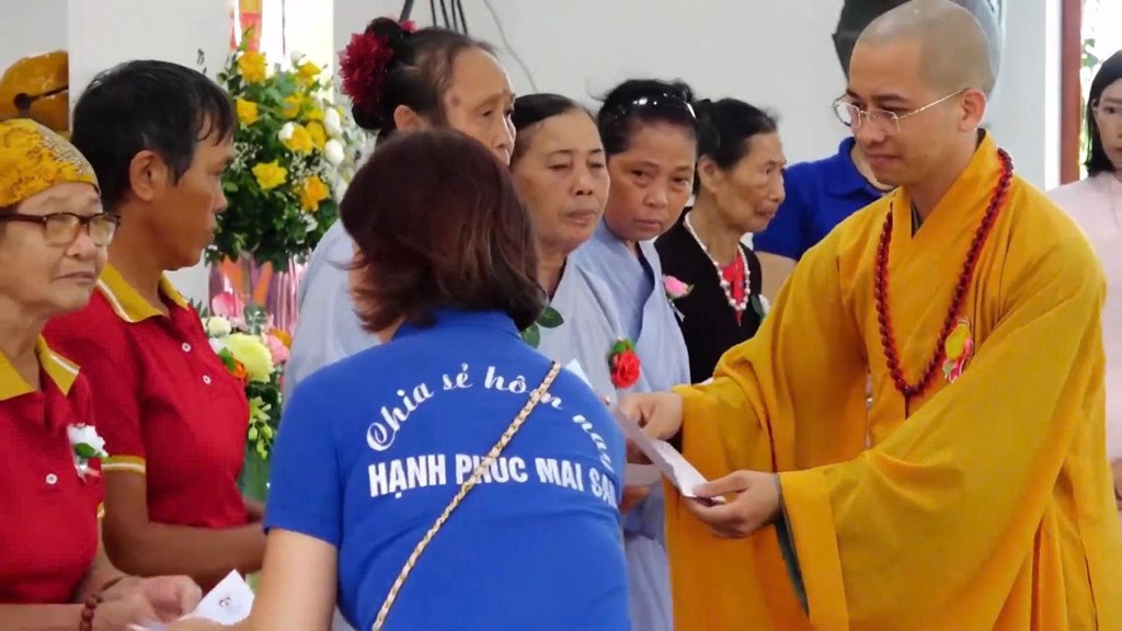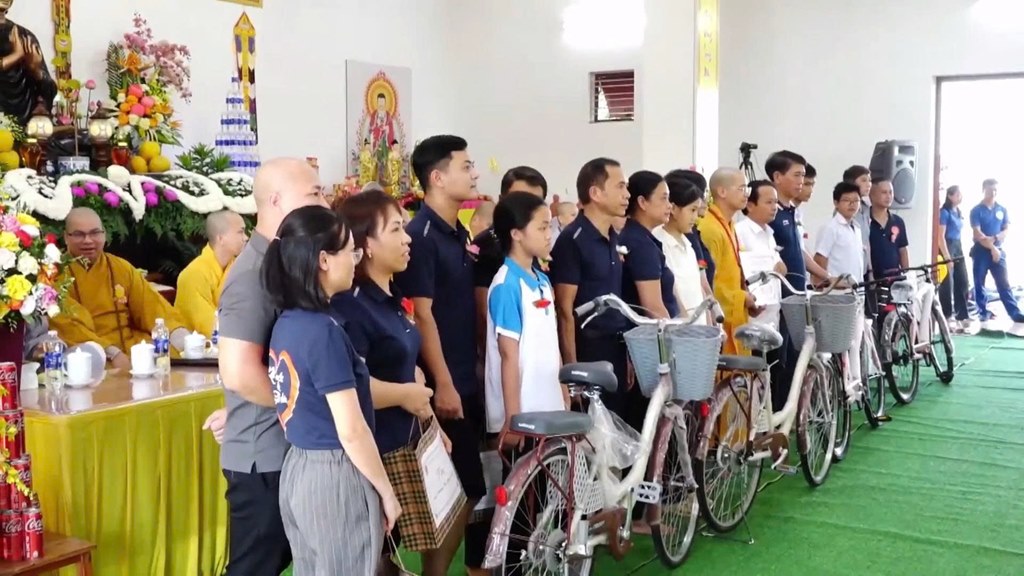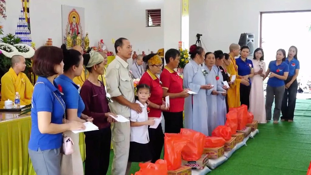 Trên tinh thần từ bi, cứu khổ, ban vui của đạo Phật, nhân ngày lễ trọng đại và ý nghĩa trong Phật giáo, Ban tổ chức chương trình đã cùng nhóm thiện nguyện Thái Bình, các nhà hảo tâm, các mạnh thường quân trao 10 phần quà cho các gia đình có hoàn cảnh khó khăn, mỗi phần quà 1 triệu đồng, trao 4 chiếc xe đạp cho các em học sinh có hoản cảnh khó khăn, đạt thành tích cao trong học tập, với số tiền 10 triệu 500 nghìn đồng. Tổng số tiền là 20 triệu 500 nghìn đồng. Bên cạnh đó, chương trình còn hỗ trợ 500 nghìn đồng hàng tháng cho 1 gia đình có hoàn cảnh khó khăn, mắc bệnh hiểm nghèo tại địa phương. Những món quà tuy nhỏ nhưng thể hiện sự quan tâm của Phật giáo, luôn chung tay cùng các cấp chính quyền địa phương trong các hoạt động an sinh xã hội, thực hiện theo đúng phương châm của GHPGVN đề ra: “Phật giáo luôn đồng hành cùng dân tộc”.