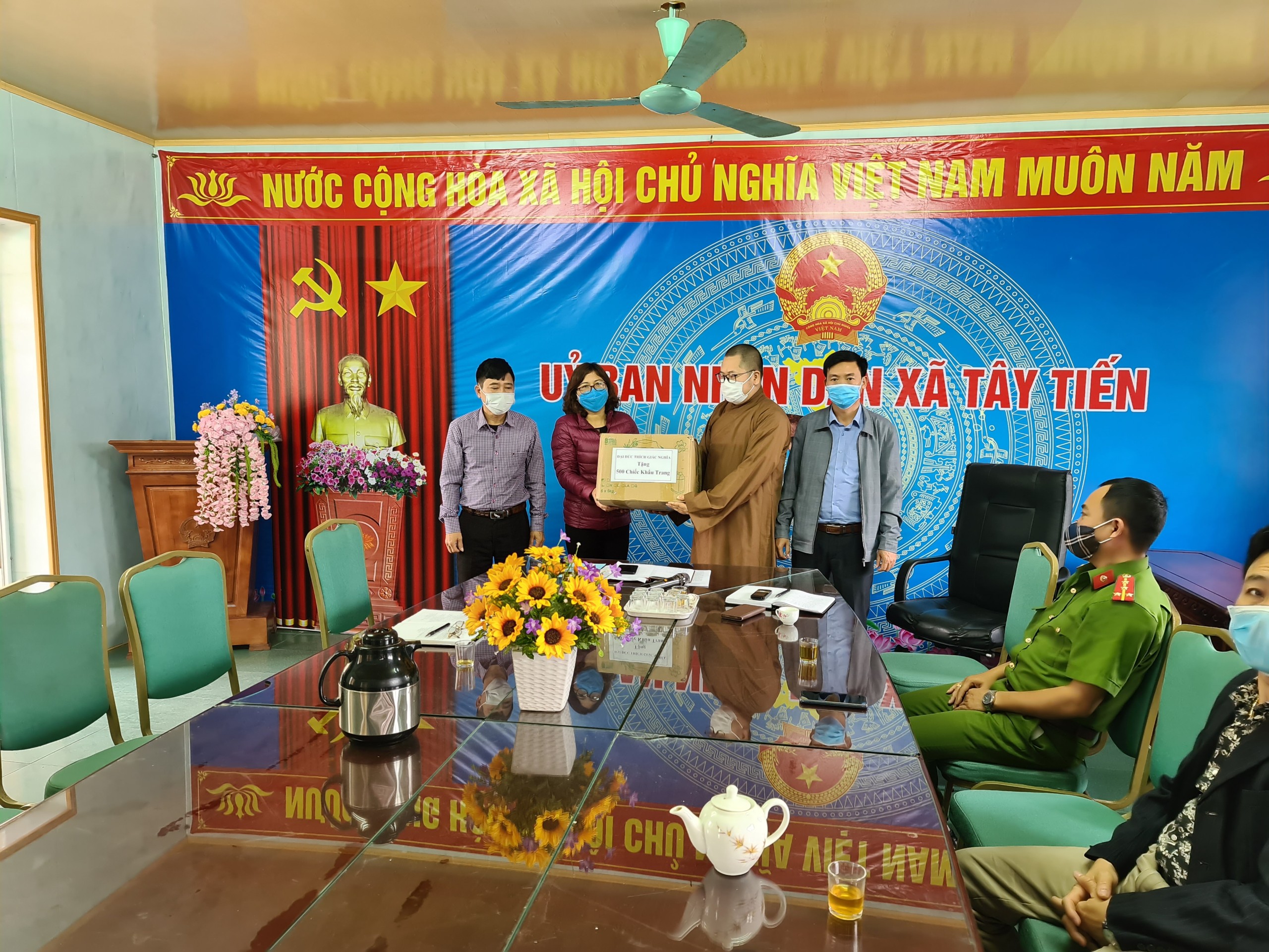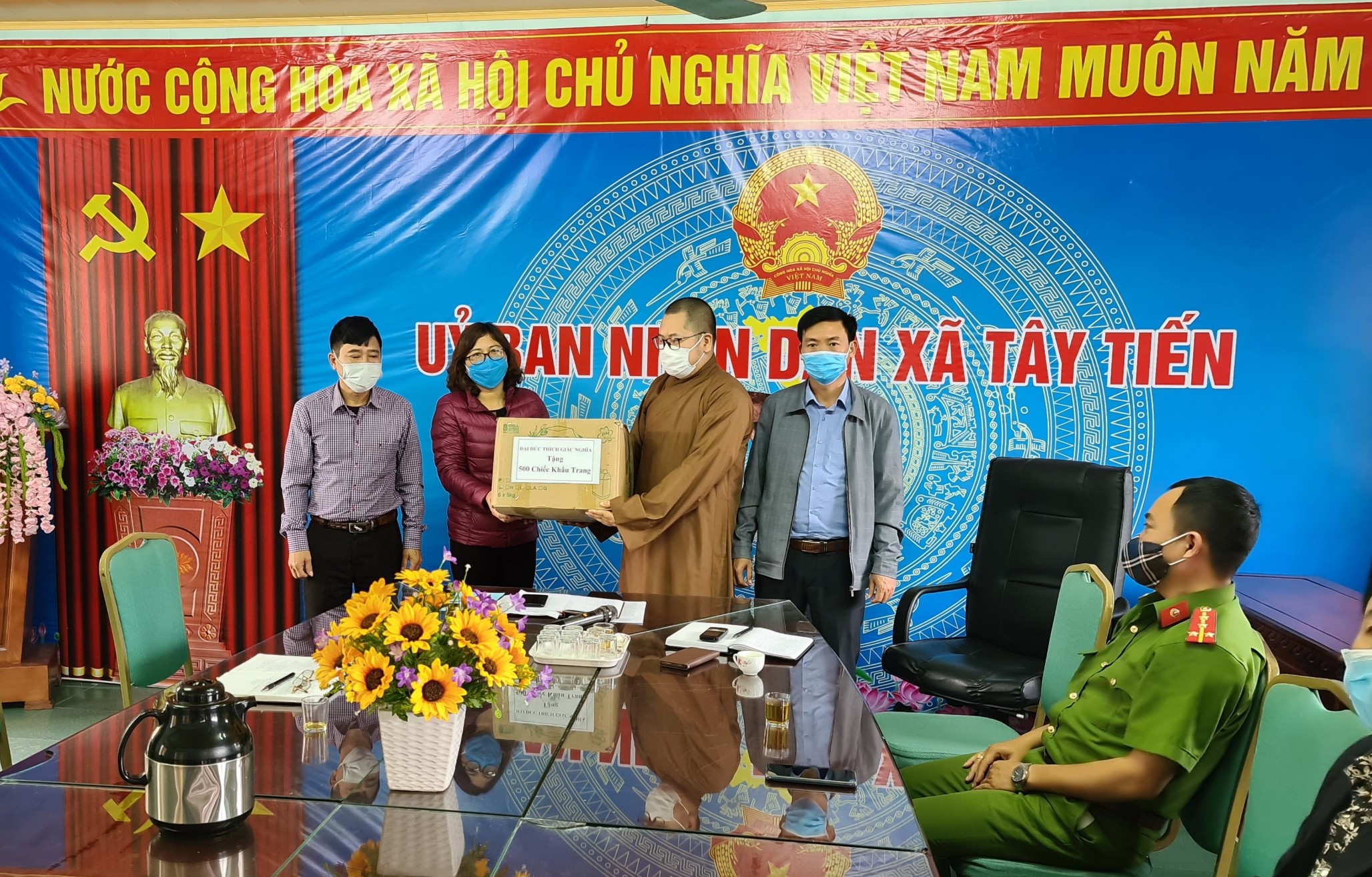 Đại đức Thích Giác Nghĩa ủng hộ công tác phòng chống Covid-19 tại xã Tây Tiến, huyện Tiền Hải, tỉnh Thái Bình.