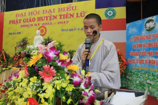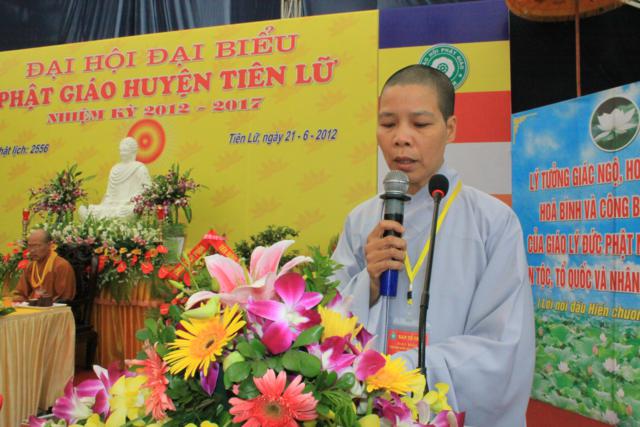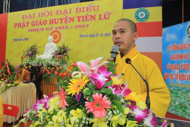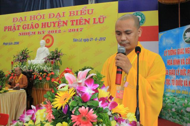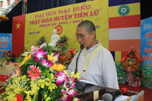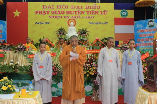 Sau nghi lễ niệm Hồng danh đức Bổn sư,ĐĐ.Thích Thanh Quang – Chánh thư ký kiêm chánh văn phòng Phật giáo tỉnh Hưng Yên tuyên bố lý do giới thiệu thành phần tham dự.Tại Đại hội ĐĐ.Thích Tâm Viên – Chánh Ban đại diện Phật giáo huyện Tiên Lữ đã đọc báo cáo tổng kết hoạt động Phật sự lần thứ III nhiệm kỳ (2007-2012) và dự thảo chương trình hoạt động Phật sự lần thứ IV nhiệm kỳ (2012-2017),để nâng cao chất lượng hoạt động của công tác Phật sự, công tác phụng đạo yêu nước của nhiệm kỳ mới, thực hiện phương châm “ Đạo Pháp dân tộc, chủ nghĩa xã hội “ phát huy những thành tựu đã đạt được.