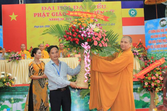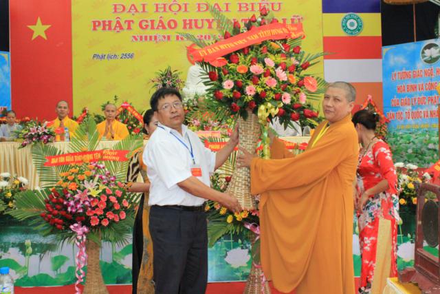 ĐĐ.Thích Đồng Huệ – Phó Trưởng Ban Trị Sự THPG Hưng Yên phát biểu tán thán các công tác Phật sự của Ban đại diện Phật giáo huyện nhà đã đạt được trong thời gian qua.Đại Đức mong muốn trong nhiệm kỳ mới, Chư tôn đức Tăng Ni Phật tử trong toàn Huyện sẽ tiếp tục phát huy tinh thần “Đạo pháp – Dân tộc – CNXH” của Giáo hội Phật giáo Việt Nam.”