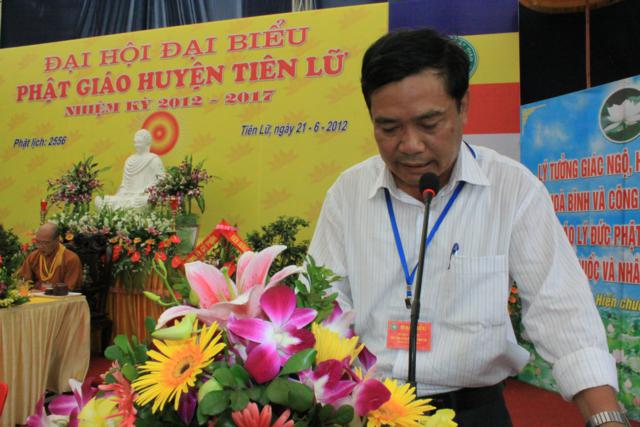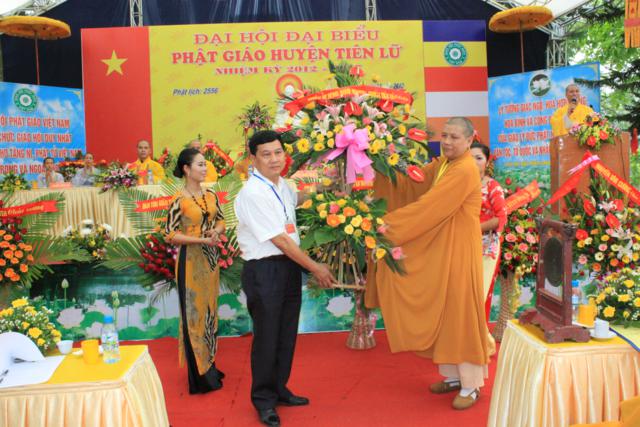 Ông Trần Văn Tới,Chủ tịch UBND huyện thay mặt các cấp chính quyền phát biểu chúc mừng Đại hội,Ông đã đánh giá cao các hoạt động Phật sự của giáo hội PG huyện Tiên Lữ đã đạt được trong thời gian qua.Giáo hội Phật giáo cùng đồng hành với dân tộc, góp phần xây dựng quê hương ngày càng phát triển, thực hiện thắng lợi mục tiêu dân giàu, nước mạnh, dân chủ, công bằng, văn minh.