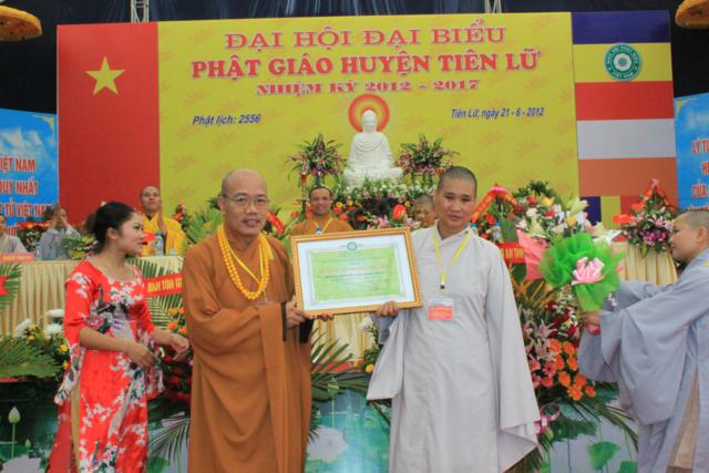 Đại hội đã thành tựu viên mãn, suy cử ra 9 thành viên Tân ban đại diện Phật giáo huyện Tiên Lữ nhiệm kỳ 2012-1017 do ĐĐ.Thích Tâm Viên – Chánh Ban đại diện.