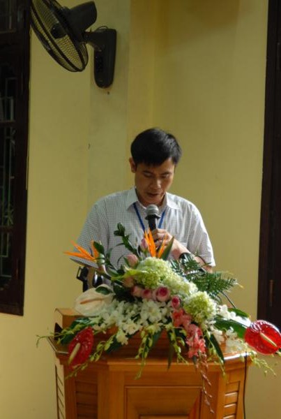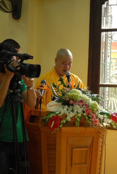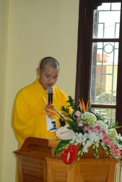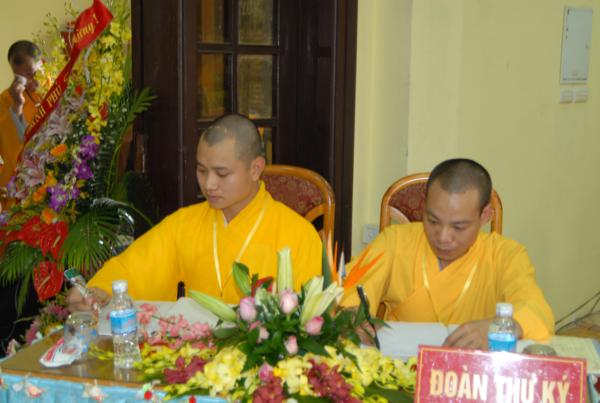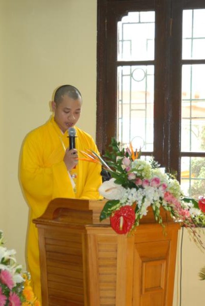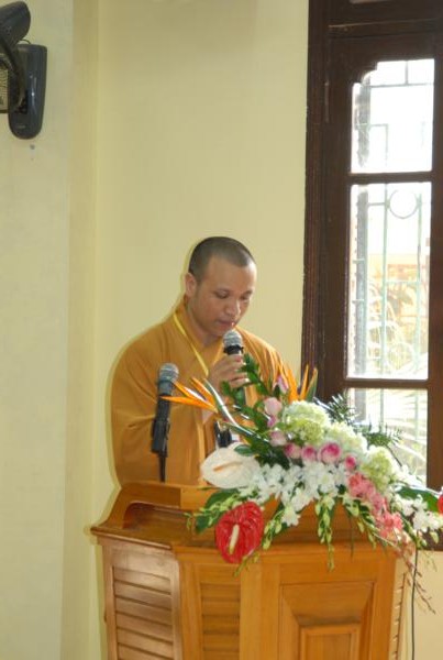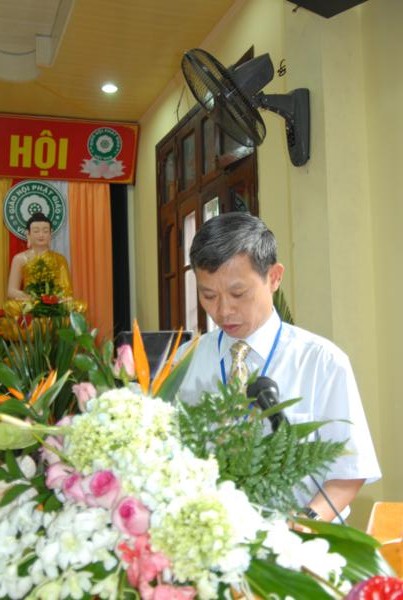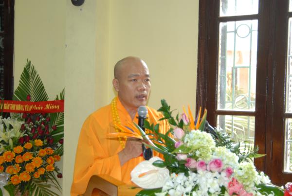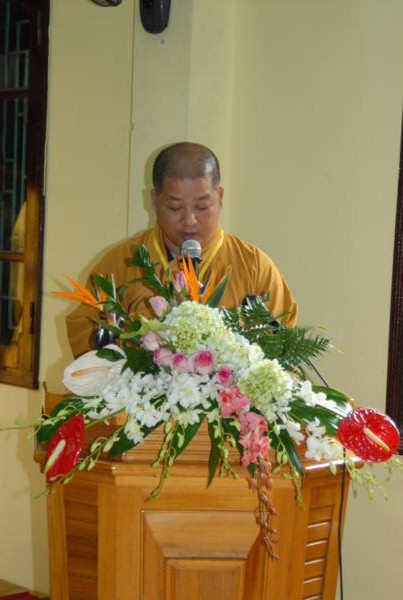 Đại đức Thích Thanh Nguyên – Phó Ban đại diện Phật giáo huyện đọc báo cáo các công tác Phật sự xã hội nhiệm kỳ III (2007- 2012)