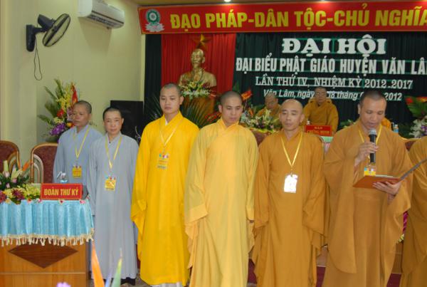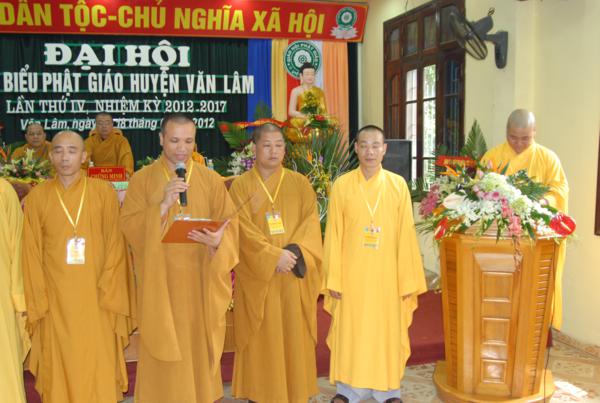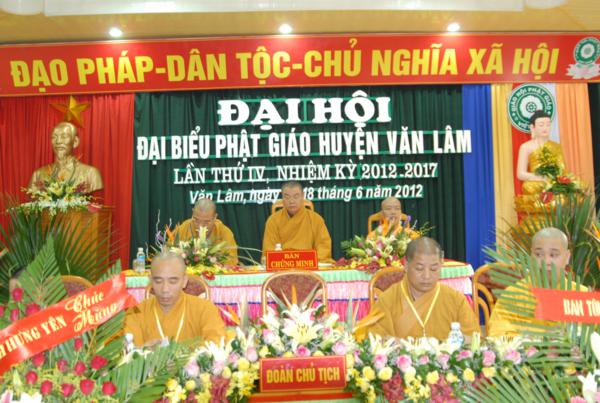 Đánh giá công tác Phật sự 5 năm qua và bản phương hướng, thông qua chương trình hoạt động Phật sự nhiệm kỳ 2012 -2017, Đại hội thống nhất đánh giá: Nhiệm kỳ qua, Phật giáo huyện Văn Lâm đồng hành cùng các tầng lớp nhân dân thực hiện thắng lợi các mục tiêu phát triển kinh tế – xã hội của thành phố đề ra.