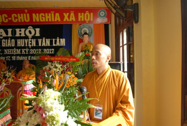 Với cương vị trưởng Ban tổ chức Đại hội nhiệm kỳ IV, Đại đức Thích Đồng Huệ – Phó BTS tỉnh hội Phật giáo Hưng Yên, Chánh đại diện Phật giáo huyện Văn Lâm nhiệm kỳ III đã đọc diễn văn khai mạc Đại hội.
