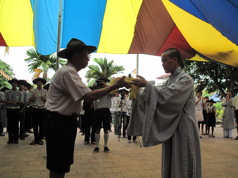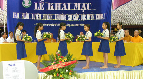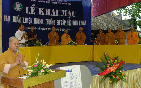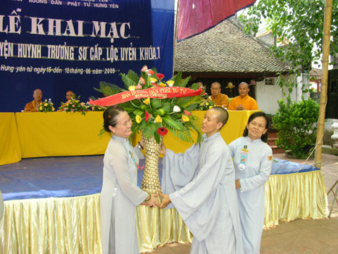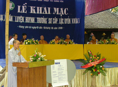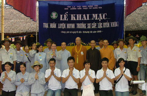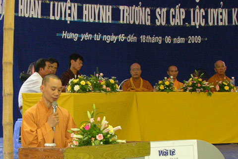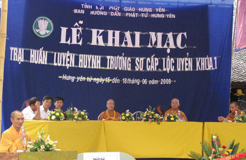 Nhân dịp này TT Thích Thanh Điện ban đạo từ tán thán công đức Tăng Ni Phật tử tỉnh Hưng Yên và các Phật tử đoàn sinh đã tổ chức tốt trại huấn luyện huynh trưởng sơ cấp Lộc Uyển khoá 1.