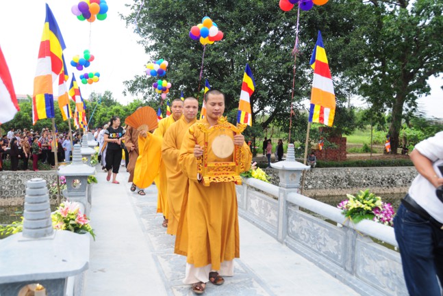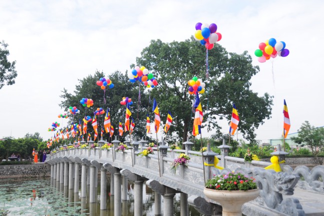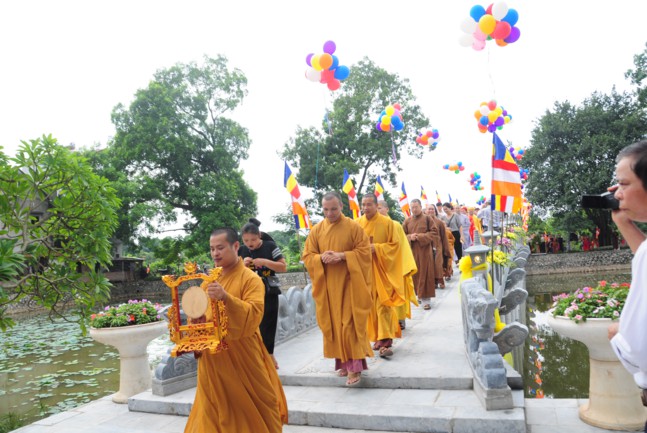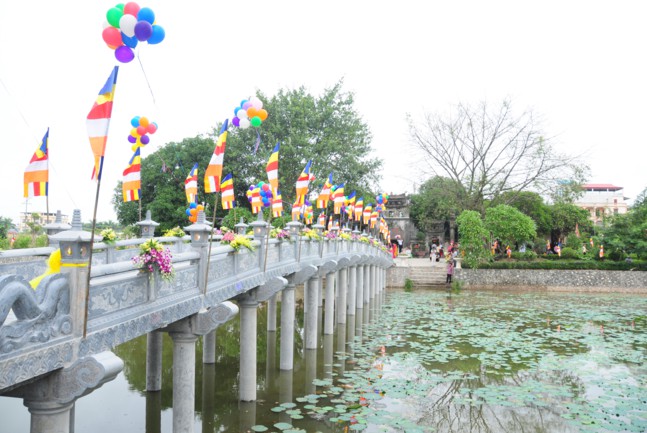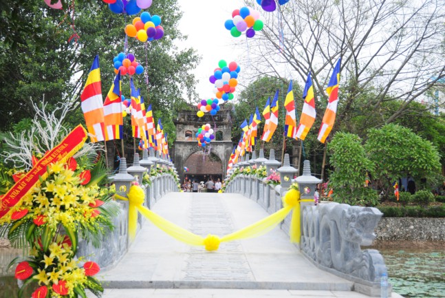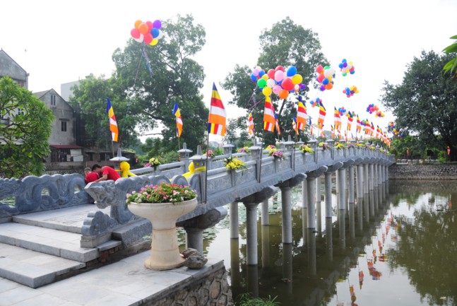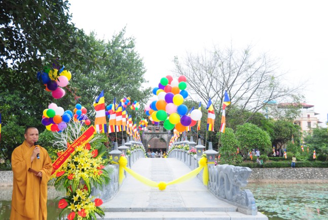 Nhân dịp này, Chư tôn đức Tăng trong chốn trụ xứ, bà con Phật tử và nhân dân địa phương đã tổ chức lễ kỷ niệm ngày đức vua Lý Thần Tông băng hà ( 1116 – 1138) và lễ cắt băng khánh thành cây cầu đá bắc qua ao để vào chùa.
