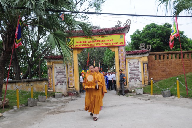Quang lâm và chứng minh buổi lễ có sự hiện diện của TT. Thích Đồng Huệ – Ủy viên HĐTS GHPGVN, phó trưởng Ban thường trực BTS GHPGVN tỉnh Hà Giang, trụ trì chùa Nôm và chùa Ông, tỉnh Hưng Yên, Đại đức Thích Minh Hậu – Phó trụ trì chùa Ông, tỉnh Hưng Yên cùng đông đảo chư tôn thiền đức Tăng Ni trụ trì các tổ đình, tự viện trong và ngoài tỉnh Hưng Yên cũng về tham dự buổi lễ.