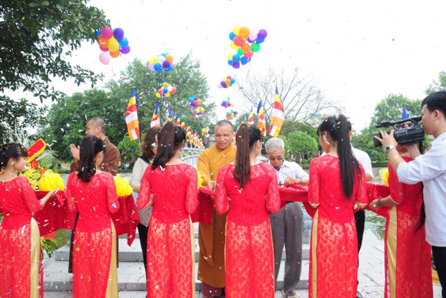 Kết thúc buổi lễ,Chưtôn đức đã cùng các cấp chính quyền địa phương làm lễ cắt băng khánh thành cây cầu đá trong niềm hoan hỷ của đông đảo bà con Phật tử và nhân dân địa phương.