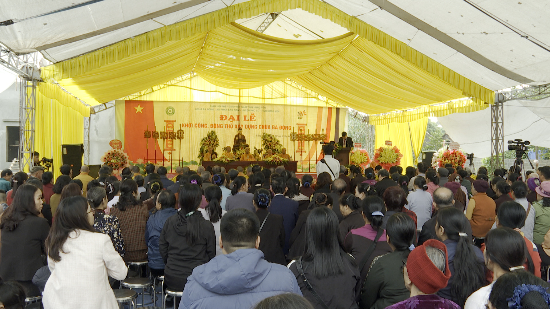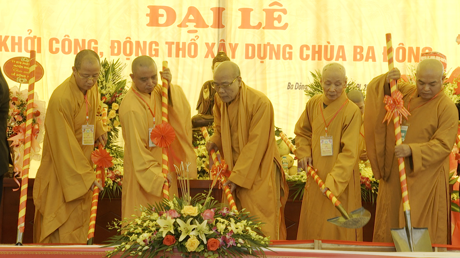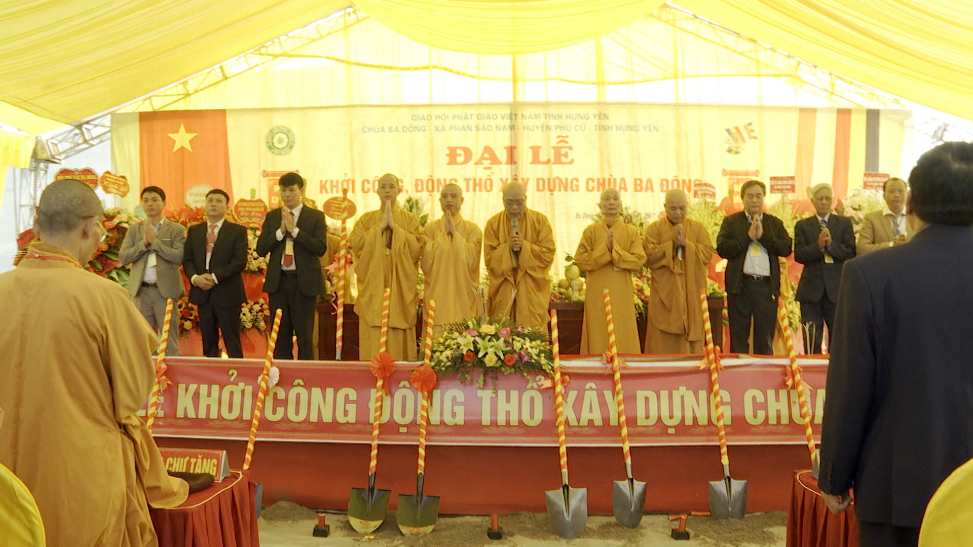 Cuối buổi lễ, chư Tôn đức Tăng và đại diện các cấp chính quyền, nhà hảo tâm, … đã thực hiện nghi thức động thổ khởi công xây dựng chùa Ba Đông, đánh dấu một sự kiện trọng đại của Phật giáo huyện Phù Cừ.