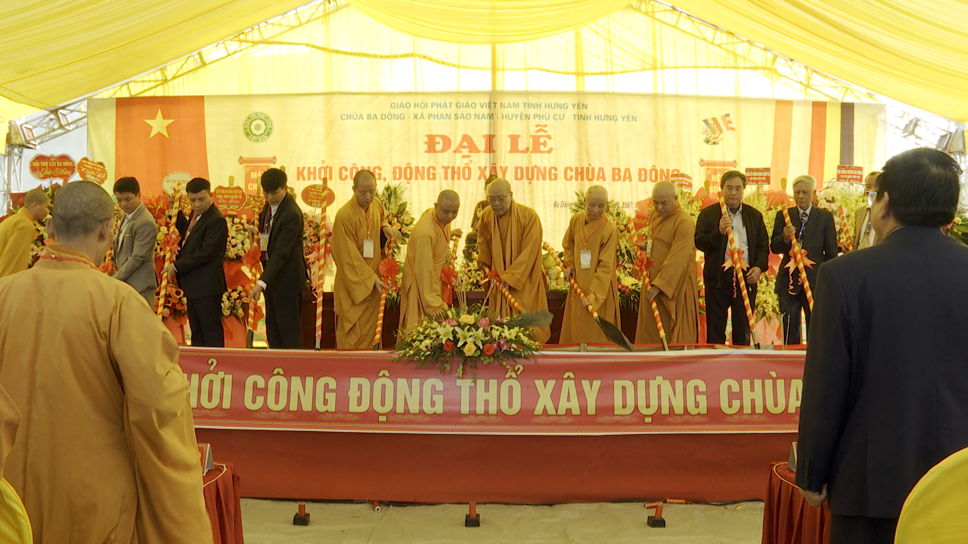 Cuối buổi lễ, chư Tôn đức Tăng và đại diện các cấp chính quyền, nhà hảo tâm, … đã thực hiện nghi thức động thổ khởi công xây dựng chùa Ba Đông, đánh dấu một sự kiện trọng đại của Phật giáo huyện Phù Cừ.