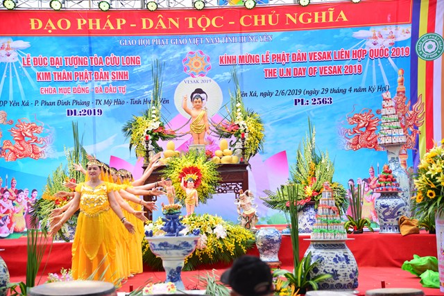 Sáng ngày 2/6/2019 ( nhằm ngày 29/04/Kỷ Hợi), tại chùa Mục Đồng ( Bà Đầu tự), tổ dân phố Yên Xá, phường Phan Đình Phùng, thị xã Mỹ Hào, tỉnh Hưng Yên đã long trọng diễn ra Đại lễ Phật đản PL. 2563 – DL. 2019 và lễ rót đồng đúc Tòa cửu long kim thân Phật tượng Thích Ca Mâu Ni sơ sinh với tổng trọng lượng khoảng 5000kg.