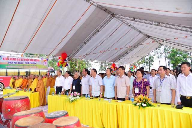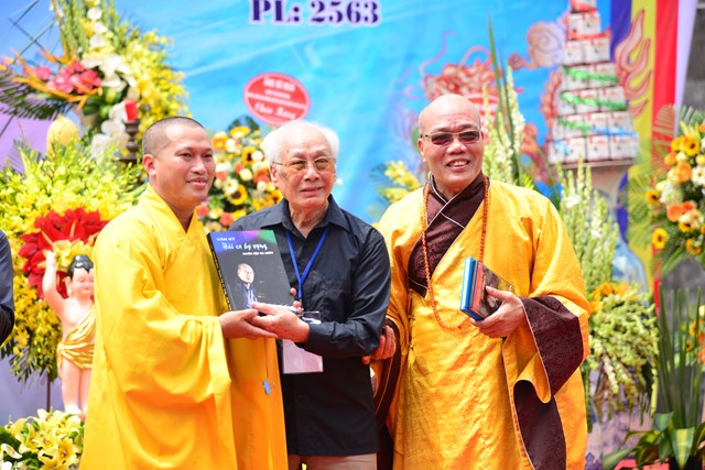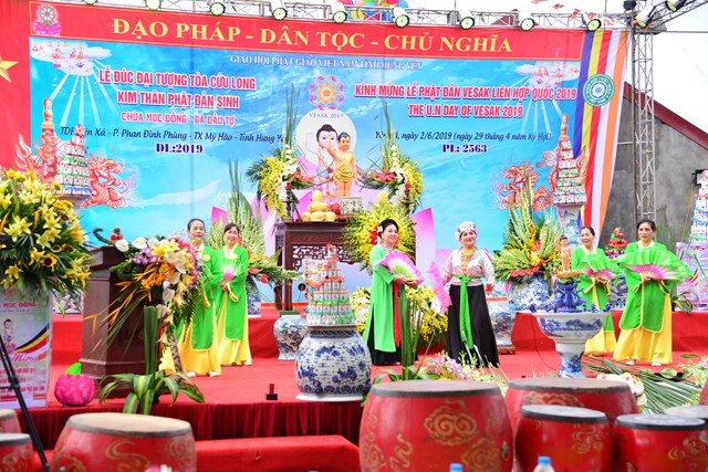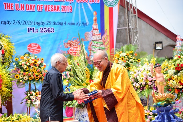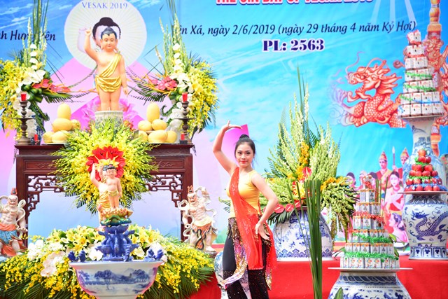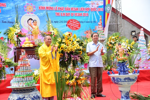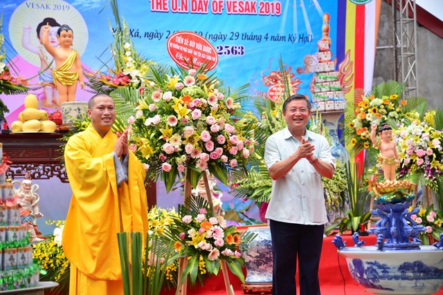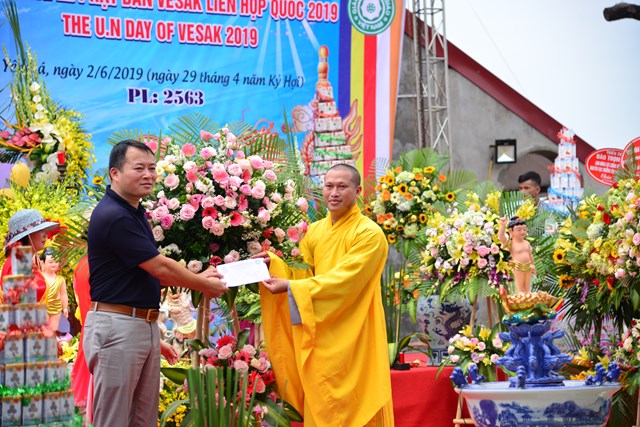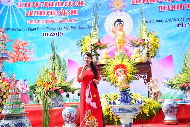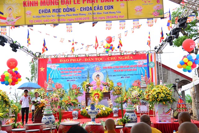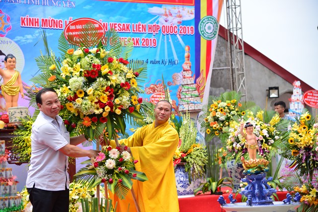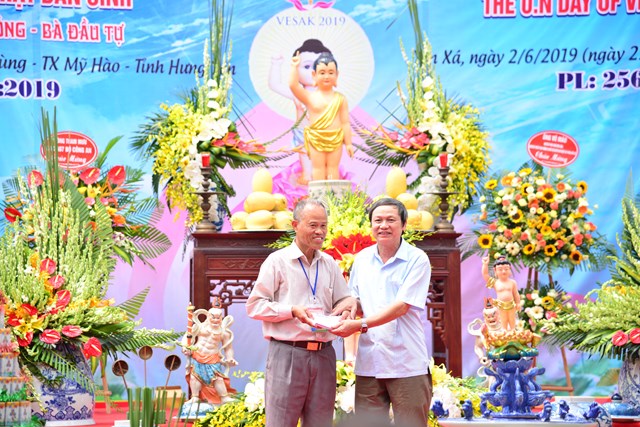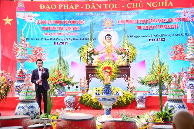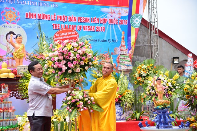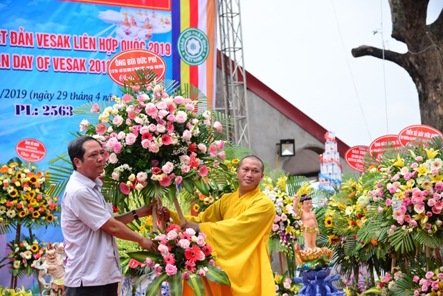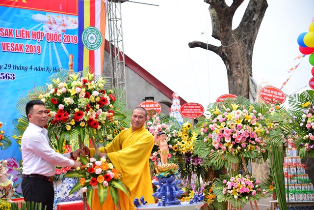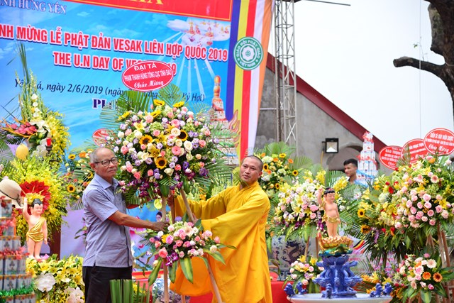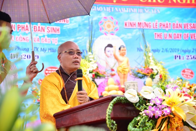 Sau nghi thức niệm Phật cầu gia bị, chào Quốc kỳ, Đạo kỳ, một phút nhập từ bi quán tưởng nhớ đến Chư lịch đại Tổ Sư, các vị lãnh tụ cách mạng, các anh hùng liệt sỹ đã có công với Tổ Quốc, Thượng tọa Thích Thanh Nguyên – Ủy viên thường trực GHPGVN tỉnh Hưng Yên, trưởng BTS GHPGVN huyện Văn Lâm đã lên tuyên đọc Thông điệp Phật Đản PL. 2563 – DL. 2019 của trưởng lão Hòa thượng Thích Phổ Tuệ – Đệ tam Pháp chủ GHPGVN gửi chư tôn đức Tăng Ni, Phật tử trong nước và nước ngoài.