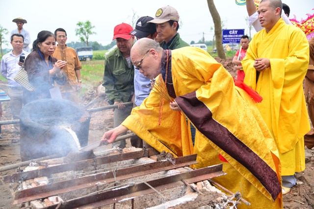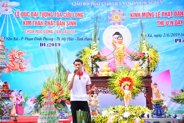 Nhân dịp này, Hòa thượng Thích Thanh Hiện – Trưởng BTS GHPGVN tỉnh Hưng Yên đã ban đạo từ tán thán công đức của Đại đức trụ trì, nhân dân địa phương, đồng thời Hòa thượng cũng nhắc lại cho các Phật tử hiểu về nguồn gốc, ý nghĩa của sự kiện Đức Phật Thích Ca đản sinh và ý nghĩa của của việc đúc tôn tượng Đức Phật Thích Ca Mâu Ni sơ sinh.