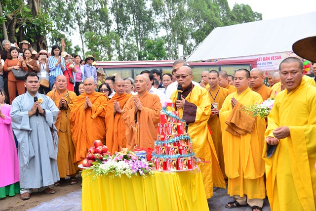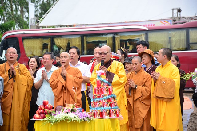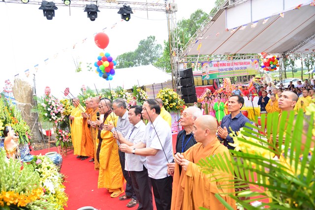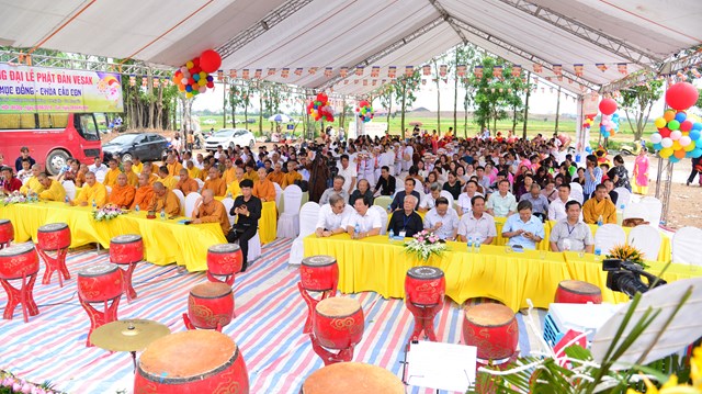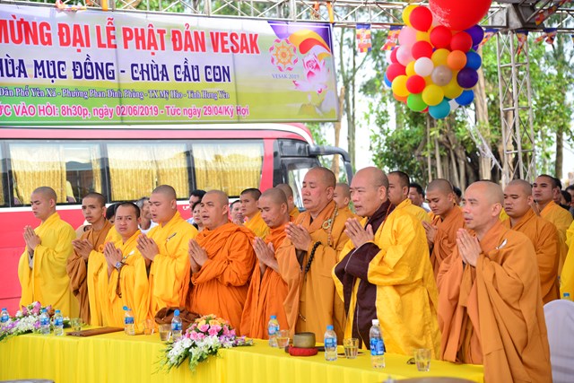 Trước khi kết thúc buổi lễ, chư tôn đức Tăng Ni, các cấp chính quyền và toàn thể đại chúng đã niêm hương, bạch Phật, cầu nguyện Thế giới hòa bình, chúng sinh an lạc, làm lễ tắm Phật truyền thống, cử hành nghi lễ trì chú rót đồng đúc Đại tượng Tòa cửu long, kim thân Phật tượng Thích Ca Mâu Ni sơ sinh và trồng cây lưu niệm tại khuôn viên chùa Mục Đồng trong niềm hoan hỷ của tất cả những người con Phật có mặt tại buổi lễ.