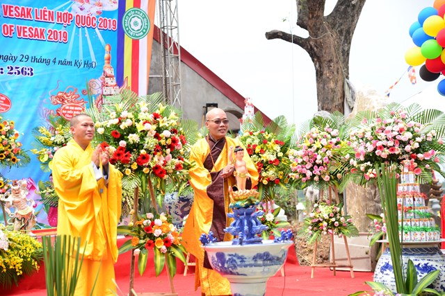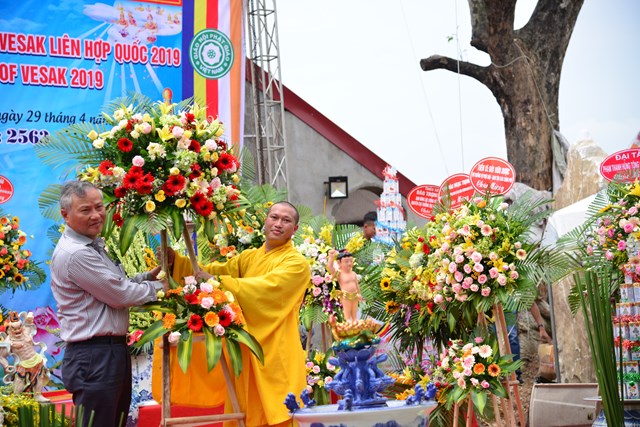 Phát biểu tại buổi lễ, Tiến sỹ Bùi Hữu Dược – Vụ trưởng vụ Phật giáo ban tôn giáo Chính phủ đã chia sẻ về hình tượng Đức Phật Thích Ca sơ sinh, ý nghĩa tắm Phật, cũng như những thành tựu đã đạt được của Phật giáo Việt Nam trong những năm vừa qua. Đặc biệt là vừa qua GHPGVN đã tổ chức thành công Đại lễ Phật đản Liên Hợp Quốc Vesak 2019 tại Trung tâm văn hóa tâm linh chùa Tam Chúc – Tỉnh Hà Nam từ ngày 12 đến ngày 14/05/2019 với sự tham dự của 116 Quốc gia, với hơn 1500 đại biểu chính thức đến từ các Quốc gia và các vùng lãnh thổ trên thế giới.
