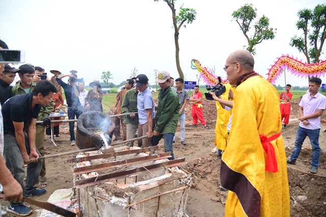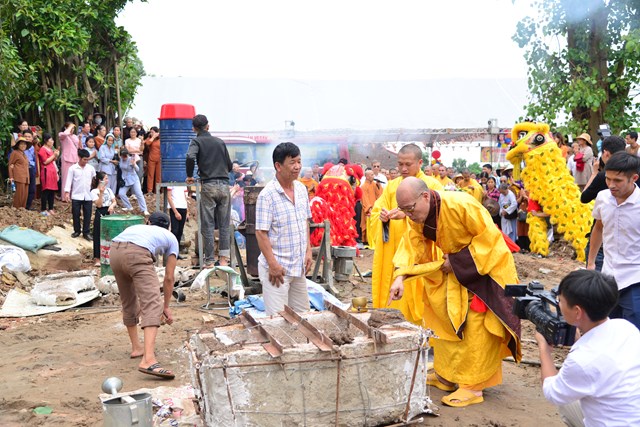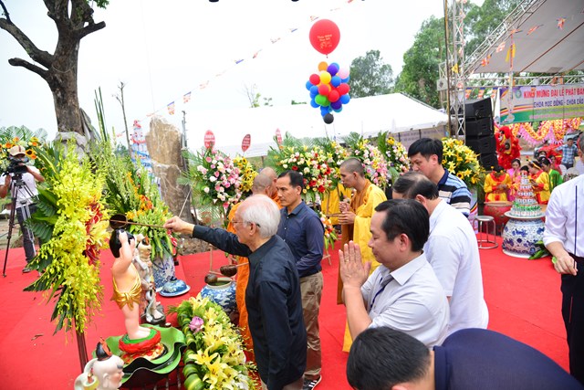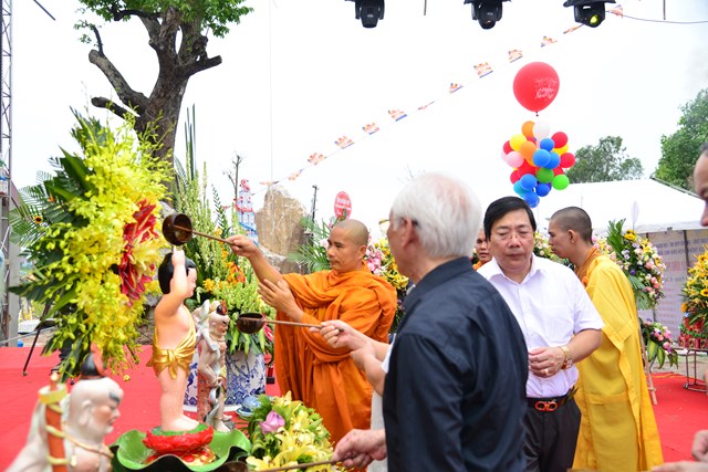 Chư tôn đức quang lâm nơi rót đồng đúc tượng Phật Thích Ca sơ sinh
