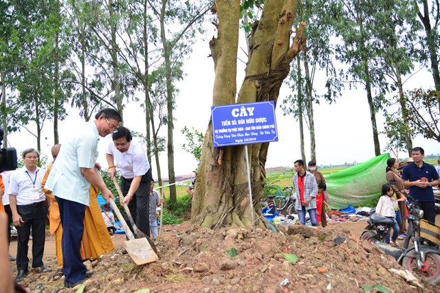 Đại tá: Đỗ Văn Lực – GĐ Công an tỉnh Quảng Ninh trồng cây lưu niệm tại chùa Mục Đồng