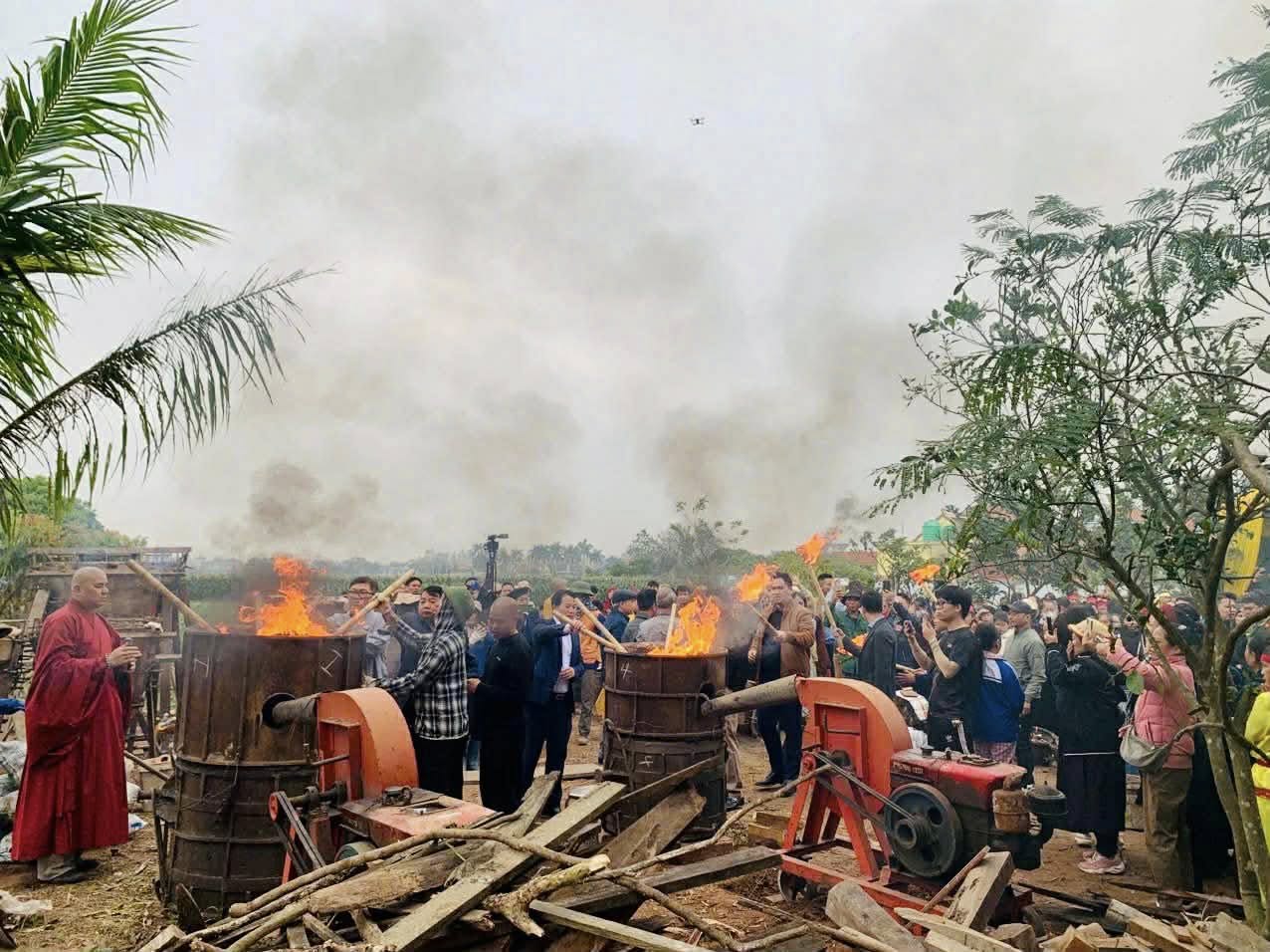 Chư tôn đức khai hỏa đúc tôn tượng chư Phật và Bồ Tát